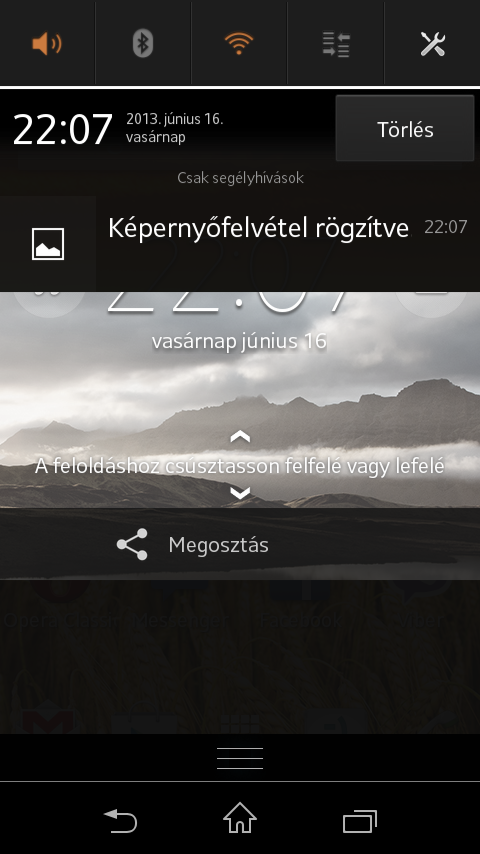 Az értesítési sáv alapvetően szintén azonos az Androidban lévő alapváltozattal, de az értesítések felett egy kapcsolópanel is megjelent, amivel a hangerő, a Bluetooth és a WiFi kapcsolgatható.