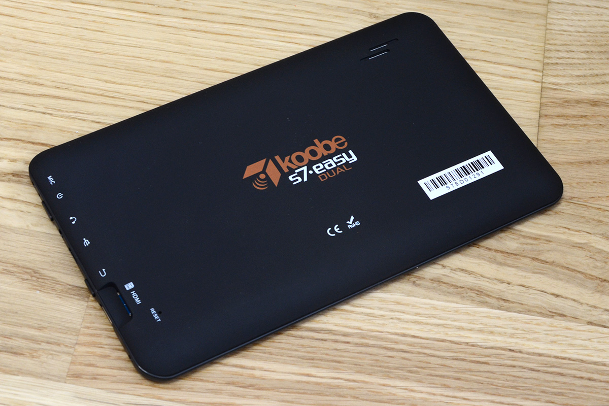 A táblagép külseje igazából semmi érdekeset nem rejt, tizenkettő egy tucat, mondhatnánk. A Koobe igyekezett kihozni a legtöbbet a rendelkezésre álló lehetőségekből, de a költségvetésbe nem fért bele semmi extra, így az S7 easy DUAL fekete színű borítása teljes egészében műanyagból készült – és ez látszik is rajta. Az illesztésekkel igazából nincs probléma, a tablet nem recseg, viszont ha a hátlapot kicsit erősebben benyomjuk, akkor a kijelző elszíneződhet. A formavilág szintén teljesen átlagos, az előlap és az oldalsó keret találkozásánál viszont elég élesre sikerült a gép széle, ami hosszabb kézben tartás esetén kellemetlen lehet. A gyártó dicséretére legyen mondva, hogy a kijelző körül lévő keret egészen vékonyra sikerült, a tablet az első generációs Nexus 7-hez képest keskenyebb és alacsonyabb is (ebben viszont a kijelző eltérő képaránya is szerepet játszik) – cserébe ugyanakkor vastagabb is.