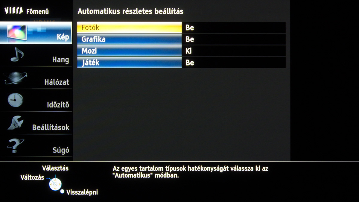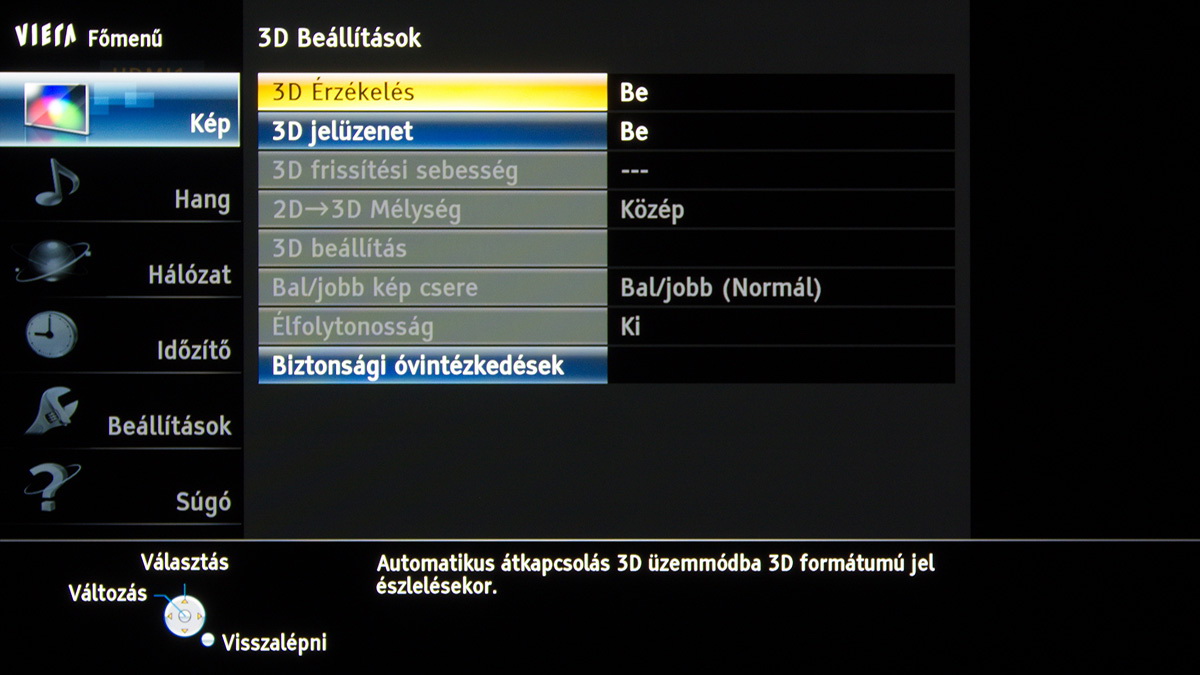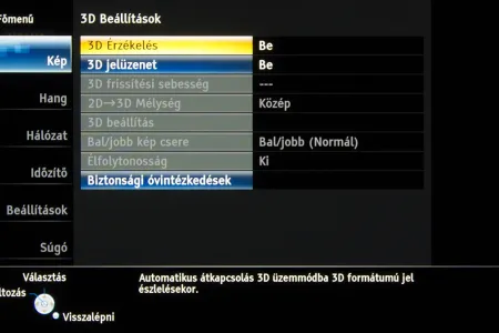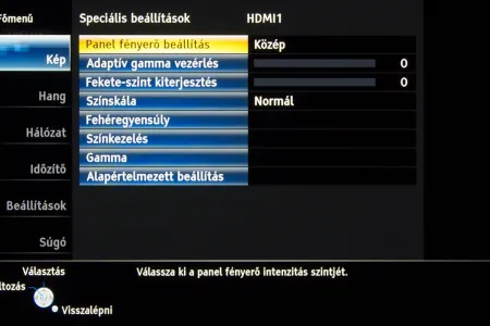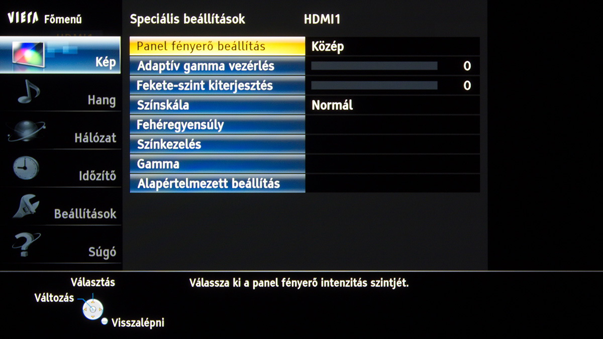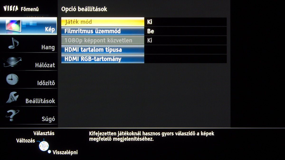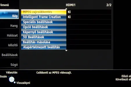 A készülékben a Panasonic saját képfeldolgozó egysége teljesít szolgálatot, amely néhány új trükkre is képes: A Resoltuion Remaster és a Brillance Enhancer például, különböző megközelítésből, a lokális kontrasztot növelik, a Caption Smoother pedig a képernyőn megjelenő feliratokat élesítik – ezek a megoldások azonban szükségszerűen úgy nyúlnak bele a képbe, hogy a színhelyességet és a gammát is rontják, ezért társaikhoz hasonlóan nem ajánljuk használatukat. A menü működése abból a szempontból tökéletes, hogy a paramétereket mindig olyan jellemzőkhöz köti, amelyekhez logikus: a HDMI módbeállítás például színprofiltól független, más paraméterek viszont a profillal együtt változnak, sőt, ha ugyanazt a színprofilt használjuk 2D és 3D módban, akkor adott esetben mindkét üzemmódra külön szettet választhatunk. Nincs már külön játék mód sem, helyette az egyes profiloknál külön lehet engedélyezni ezt a funkciót.