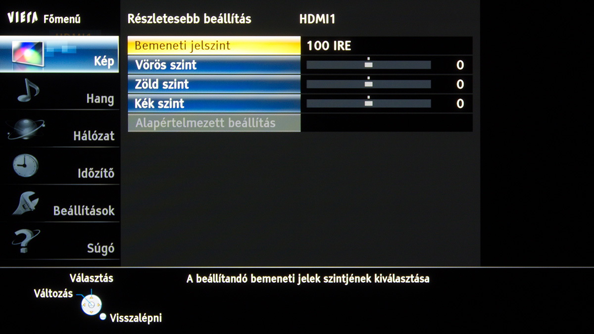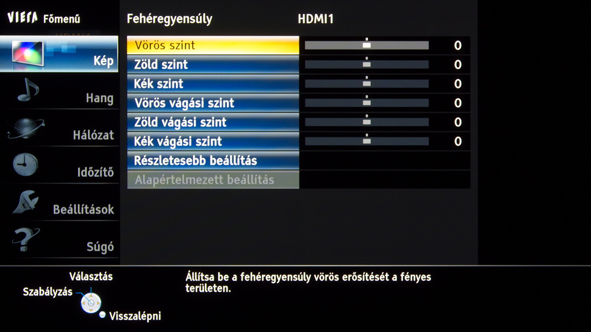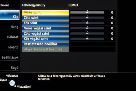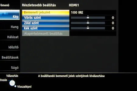 A legjobb beállításokat a True Cinema színprofilból kiindulva kerestük meg; az alapvető képjellemzőkön viszont csak minimális mértékben változtattunk (kontraszt 60 helyett 72), mert sem a feketét sem a kontrasztot nem tudtuk jelentősen növelni, cserébe viszont a gamma gyorsan elmászott. Amire figyelni kell, az az overscan és a képjavítókat kikapcsolása, a dinamikus megoldásokkal egyetemben, az RGB tartományt pedig normálra kell állítani. A HDMI fekete szintet a képforrásnak megfelelően állítsuk be, a HDMI tartalom típusa opciót pedig kapcsoljuk „ki” állásba. A TX-P42ST60-sem mentes a gyártó tévéinél megszokott, enyhén túlzó erősítéstől, de ezt gyorsan kijavíthatjuk, ha a képélességet 0-10 közé lőjük be. A panel enyhe vörösességét a nálunk járt készülék esetében a fehéregyensúly beállításnál, 0/0/0/4/-3/-5 értékekkel sikerült egészen jól kompenzálni, ennek eredmény látható a lenti képen.
