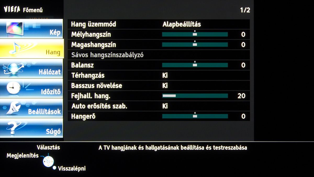Menürendszer, távirányító