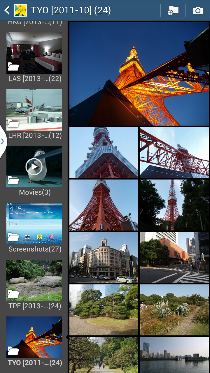 A fényképeket és videókat a Galéria nevű alkalmazással tudjuk megnyitni. Az alkalmazás alapvetően a Google-féle verzió, de a Samsung némileg átalakította a fotók megjelenítését: oldalt például kapunk egy extra sávot, ami a mappák közötti gyors váltásban segít, míg a teljes képernyős nézetben lent jelenik meg a sáv, és a fotók közötti gyorsabb ugrálásra szolgál. A képekbe bele tudunk nagyítani természetesen, és alapvető szerkesztési műveleteket is tudunk végezni, mint például vágás (crop) és effektezés. A fotók megnyitása gyors, de egy kétmagos processzortól ez ma már el is várható.