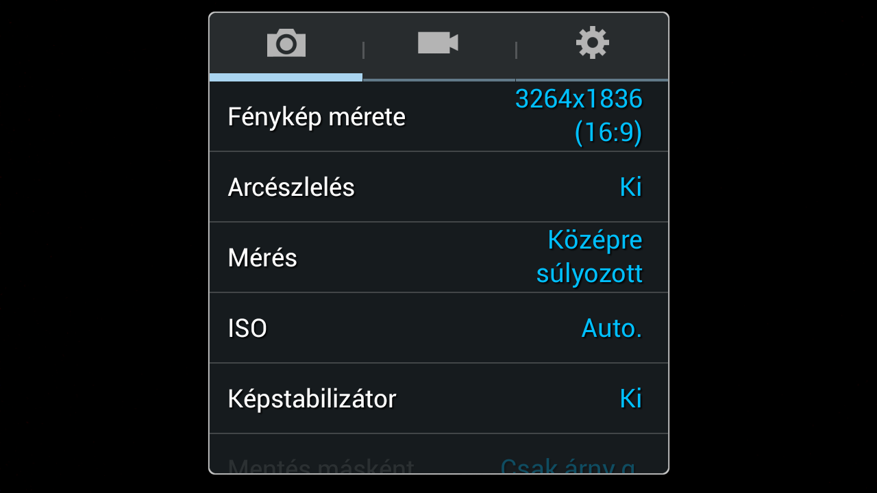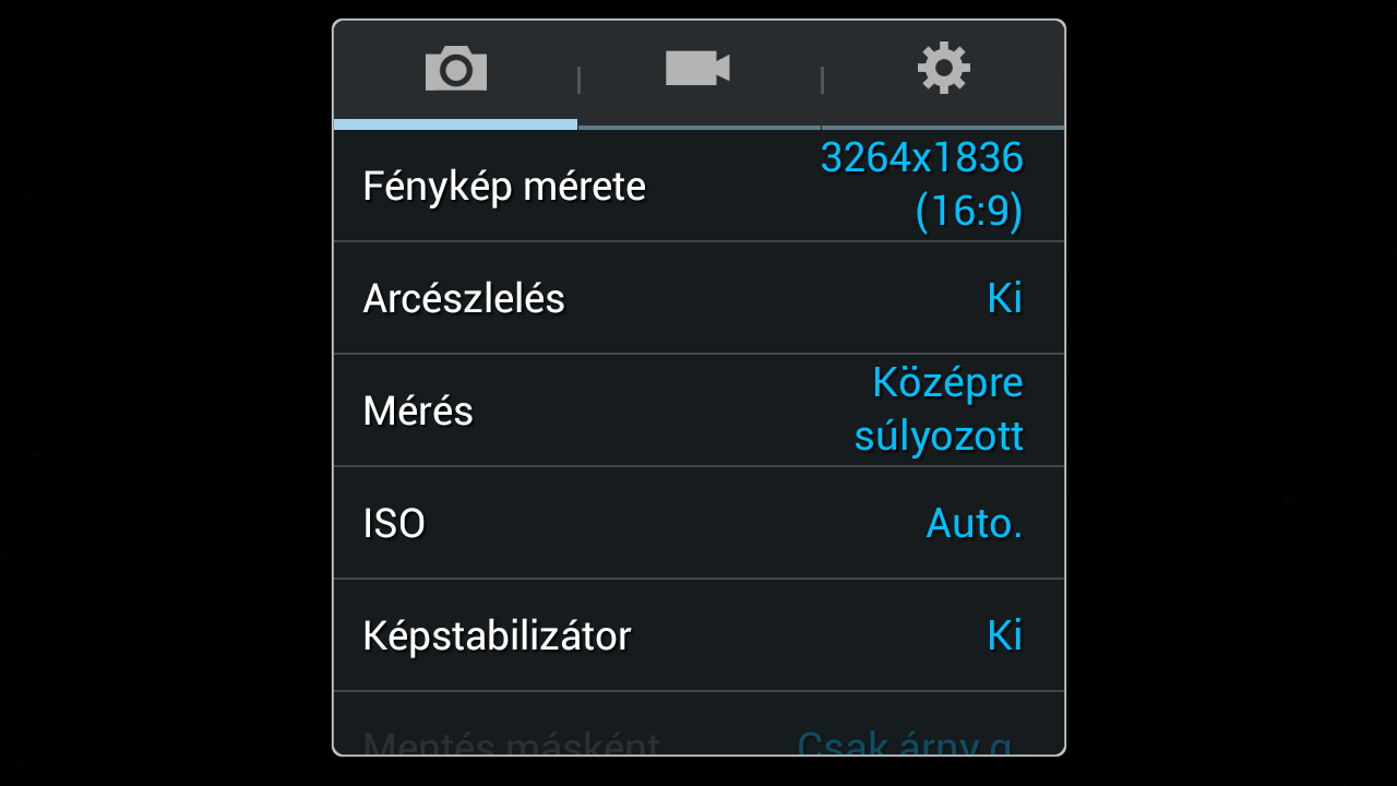 A Samsung Galaxy Mega 6.3 fő kamerája 8 MP-es (legnagyobb felbontás 3264×2448), autofókuszos. A koreai vállalat természetesen sokat csiszolt a Google alapesetben nem túl gazdag funkcióválasztékot kínáló alkalmazásán, a felületre tulajdonképpen rá sem ismerni. Egészen sok paramétert lehet állítani, és a szoftver olyan extrákra is képes, mint például néhány másodpercnyi hang rögzítése a fotók mellé, sorozatfelvétel, legjobb arc vagy effektezés. A legjobb arc üzemmódban 5 kép készül, és a végeredményt a mobil ezekből fűzi össze: így nagyobb eséllyel fog a fotókon mindenki mosolyogni. Van HDR mód is, bár ezt a Samsung Árnyalatgazdag módnak hívja. A ma elterjedt gyakorlat szerint nem kell üzemmódot váltani, ha fotó helyett videókat rögzítenénk, és a fényképkészítés (teljes mértben) akkor is működik, ha éppen video készül. A kamera munkáját sötétben egy LED-es villanó is segíti. Bár dedikált exponáló gomb nincsen, a hangerőszabályzót beállíthatjuk úgy is, hogy ne a zoom állítására, hanem exponálásra vagy videofelvétel elindítására használhassuk.