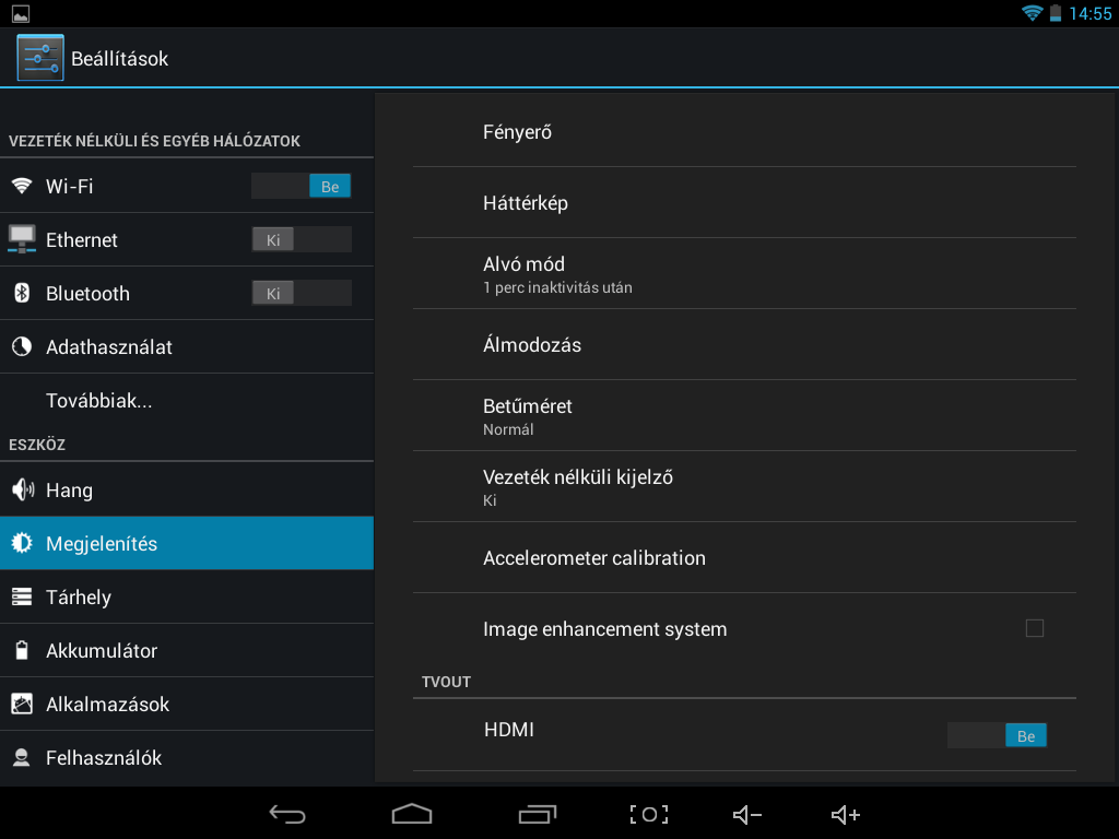 A táblagép a négymagos processzor ellenére villámgyors nem volt, az Angry Birds indítása például kétszer annyi ideig tartott neki, mint a szerkesztőségi Nexus 7-nek (amiben Tegra 3 chip van). Viszont már az is nagy pozitívum, hogy ebben az árkategóriában nem kell amiatt aggódni, hogy a vékonyka teljesítmény lehúzza az összhatást. A vas ahhoz természetesen elég, hogy egyszerre akár több appot is futtassunk párhuzamosan – és az sem lesz túlságosan lassú, ha váltogatni akarunk közöttük.