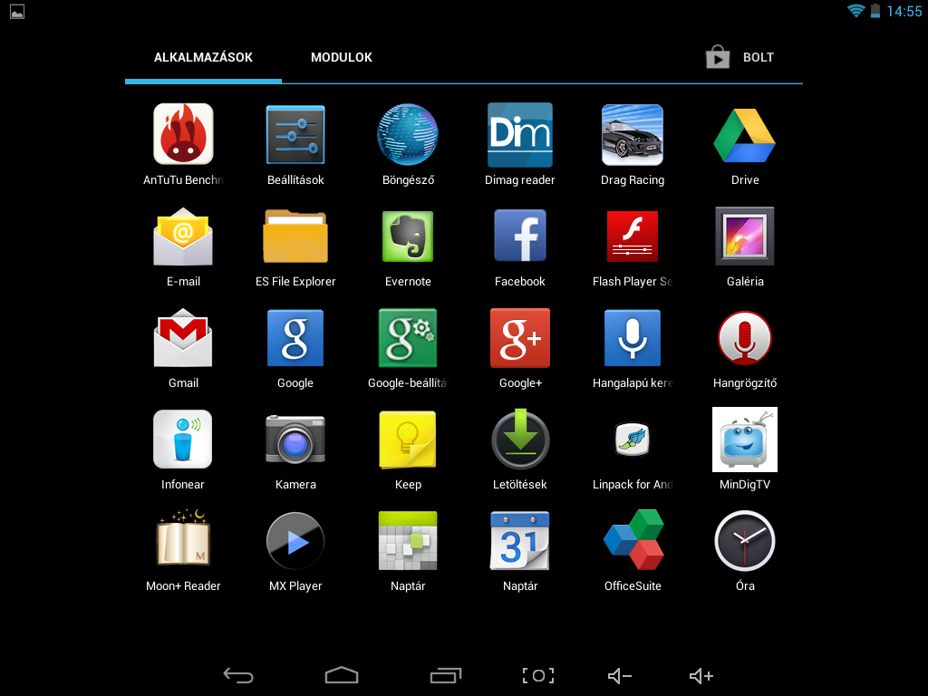 Az extra alkalmazások között a Drag Racing, árválkodik, mint egyedüli játéték, rajta kívül kapunk Evernote-ot, MinDigTV appot, Dimage Readert, Fájlkezelőt (ES File Explorer), extra médialejátszókat, Facebookot, Twittert, Skype-ot és Vibert is. A dokumentumaink kezeléséhez az Office Suite próbaverziója jár, amivel csak megnézni tudjuk a fájlokat; ha szerkeszteni és létrehozni is szeretnénk, akkor meg kell vásárolnunk a teljes verziót.