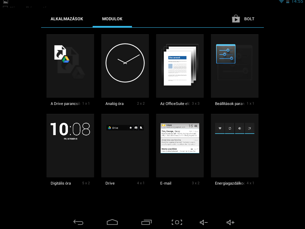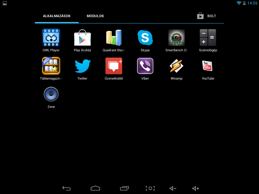 A Koobe X8 Slim Quadrum az Android 4.1.1-es változatával került forgalomba, a frissítés pedig éppen a tesztünk készítésekor érkezett meg a gépre. Az új firmware-rel az Android 4.2.2 költözött a tabletre, amely a kezelőfelületet és az extra funkciók listáját érdemben nem változtatta, de természetesen az összes olyan újdonság, ami az Android 4.2-ben jelent meg, az része lett a rendszernek. Így megjelentek például a felhasználói fiókok valamint a fentről lehúzható értesítési sáv tartalma függ attól, hogy a panelt a bal vagy a jobb oldalon húzzuk le (előbbi esetben a normál értesítések jelennek meg, utóbbi esetben pedig a kapcsolók). Elvileg javult valamit a tablet sebessége is, de ebből a hétköznapi működés során aligha érzékelhető bármi – de szerencsére azért, mert a reszponzivitással már eleve nem volt gond.