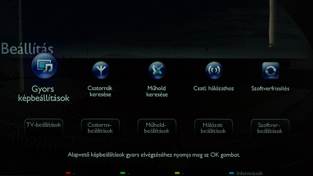A Philips tévéjének az egyik, ha nem a legszebb a menüje, de ez sajnos együtt jár azzal is, hogy az áttekinthetőség nem a legjobb (túl szövevényes az opciók hálózata), ráadásul a felület elég lassú. Ehhez még hozzávehetjük azt is, hogy a kezelés nem konzekvens, egyes helyeken az Exit, míg máshol a kék gombbal tudunk visszalépni.