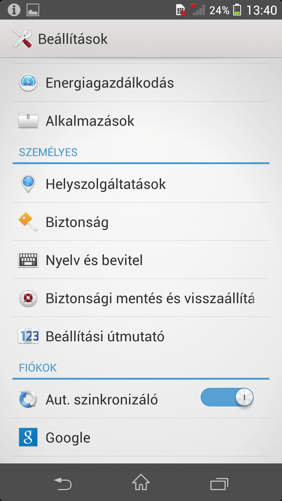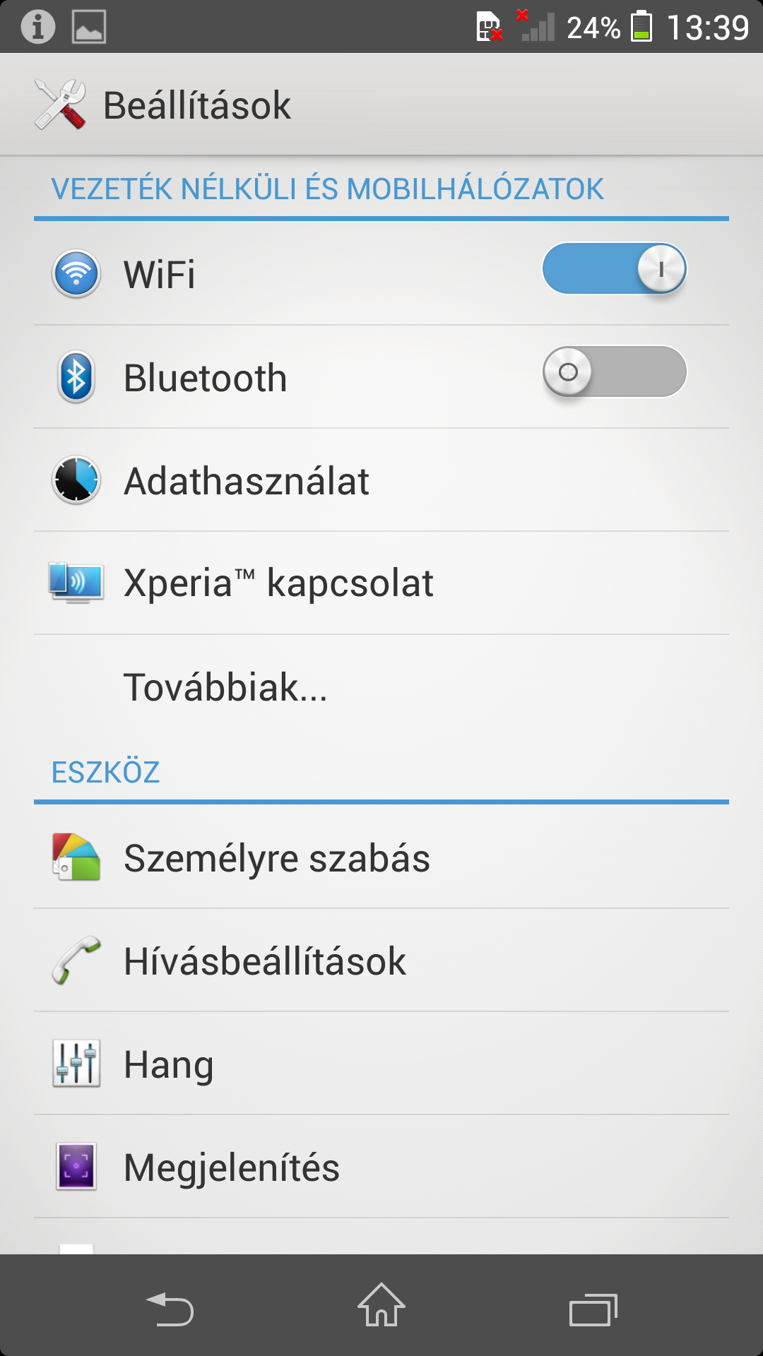Az alapvető kezelőfelületek közül a gombsorra is érdemes kitérni, amely alapesetben csak a vissza, Home és feladatkezelő gombokat tartalmazza, de azoknál a programoknál, amelyek nem támogatják a szoftveres menügombot, a sáv kiegészül egy menügombbal is.