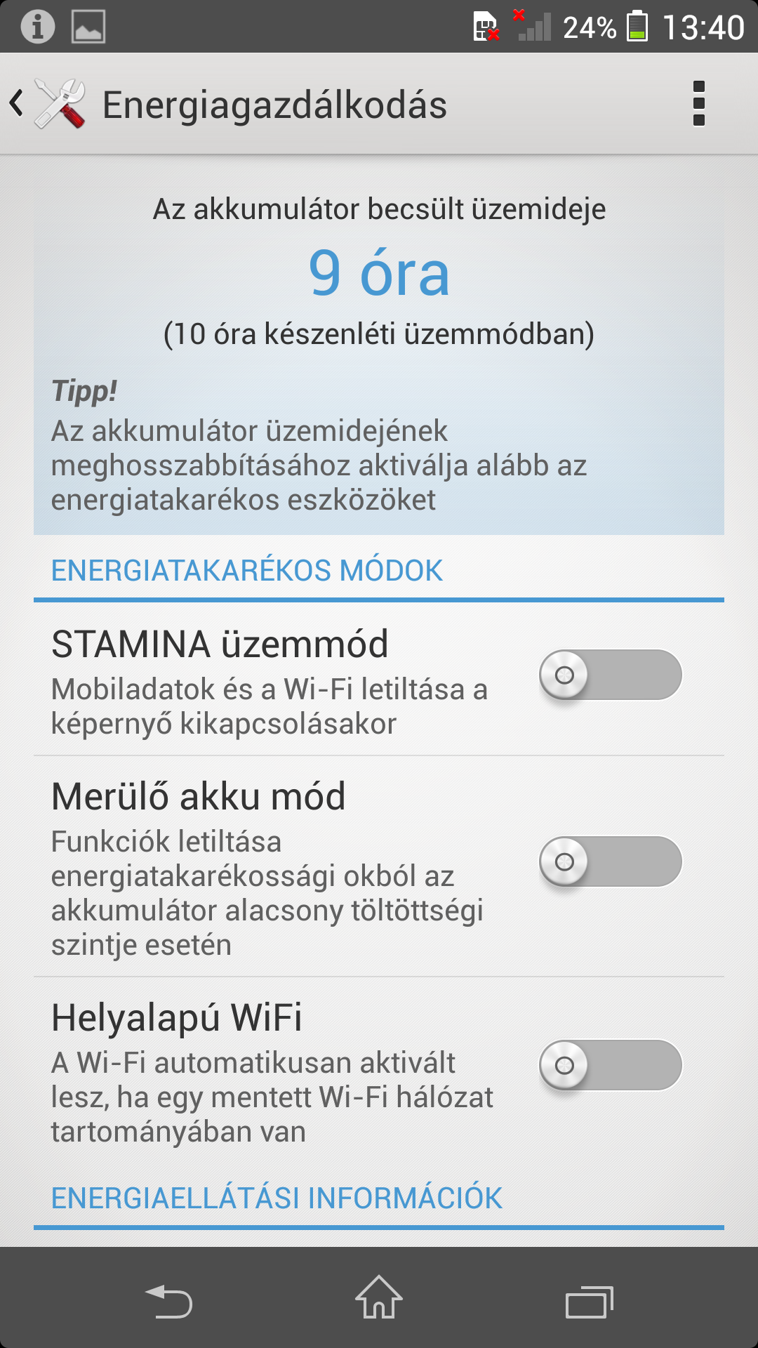 Az értesítési sáv a korábbi Xperia modellekről lesz ismerős, nem pedig az Android 4.2-ből, a Sony ugyanis valamiért úgy gondolta, hogy jó ötlet, ha a második, két ujjal lehúzható kapcsolópanelt kiveszi az operációs rendszerből. A lépés még azzal együtt sem tűnik jónak, hogy az értesítési tárhelyre kipakolhatunk akár tíz kapcsolót is – ezek ugyanis itt feleslegesen foglalják a helyet, a második rolón ugyanakkor nagyszerűen elfértek volna.