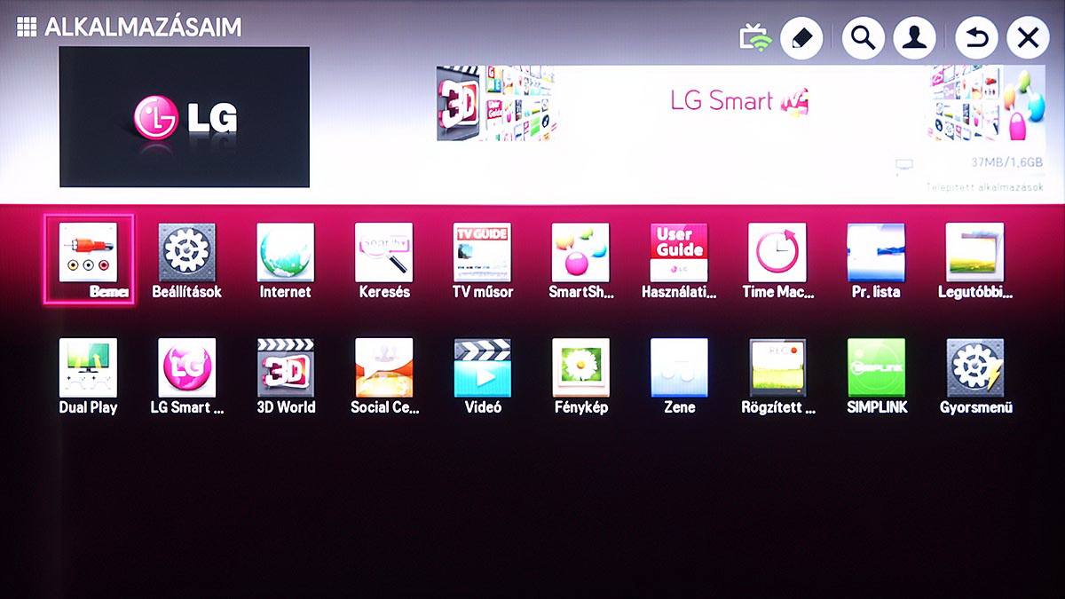 Az okostévé felület egy kisebb kozmetikázáson ment keresztül, az LG a 3D-s külsőt lecserélte a mostanában divatos „flat” megoldásra, így nincsenek árnyékok, nincsenek a felületből kiemelkedő ikonok, stb. A Smart felület logikailag továbbra is két egységre tagolódik: a kijelző nagyobb részét a tévé élőképe és a csoportokba rendezett alkalmazások foglalják el (kategóriánként a nyolc legtöbbet használt látszik), míg lent a saját alkalmazások láthatók. Az LG a tartalmakat Premium, Smart World, 3D World, Game World és Smart Share csoportokba szedte, ami gyakorlatilag egyezik a tavalyi elrendezéssel. A tévébe kétmagos processzor került, az igazat megvallva azonban ez a sebességen nem érződik túlságosan; nem lassú a 47LA660S, de villámgyorsnak sem mondanánk.