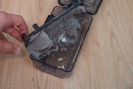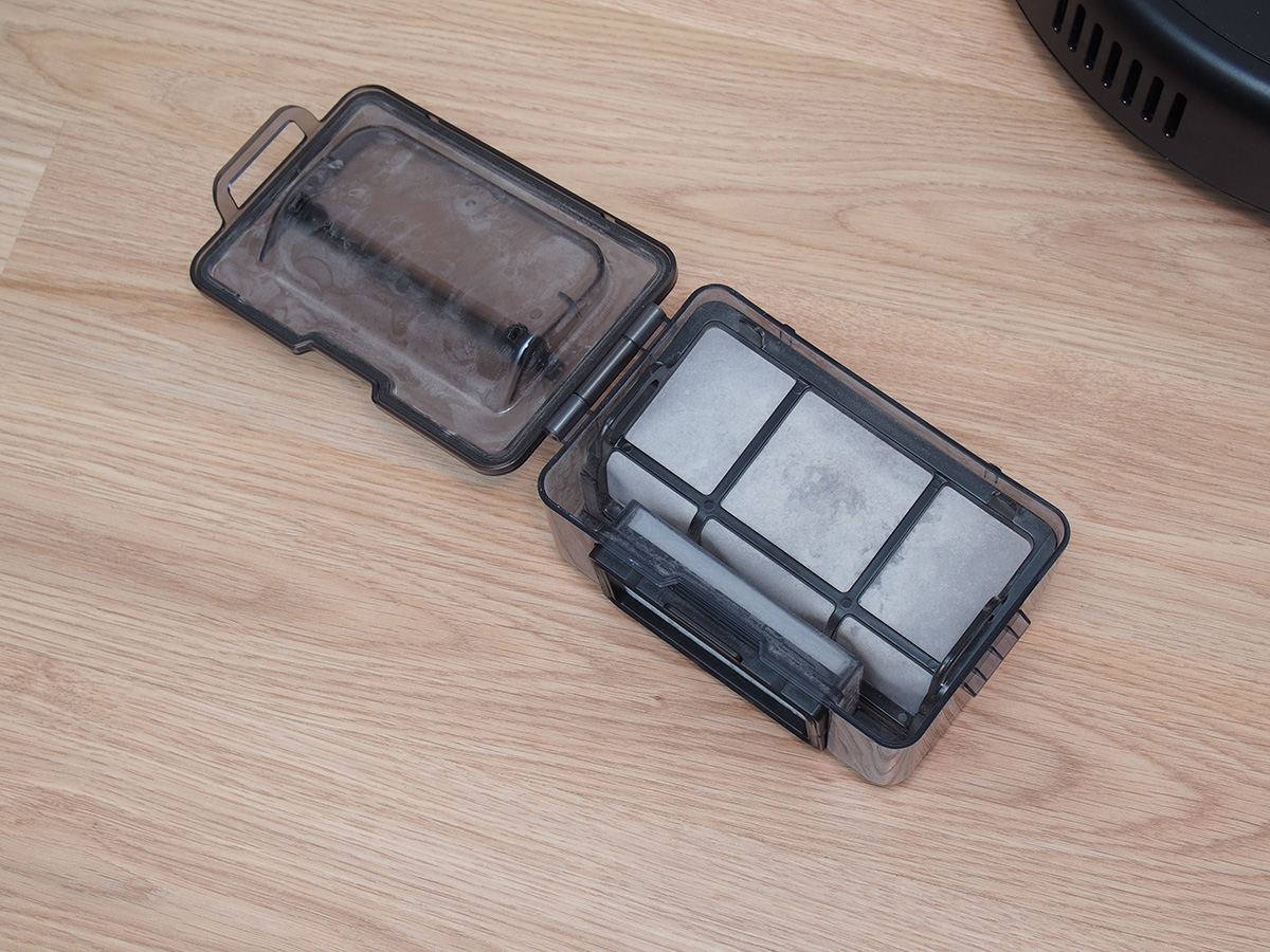 A portartály kialakítása külön dicséretet érdemel. Bár nem egyszerű kivenni a belső szűrőt, de tényleg hatékonyan megfogja a nagyobb koszt és óriásira növeli a szívófelületet.