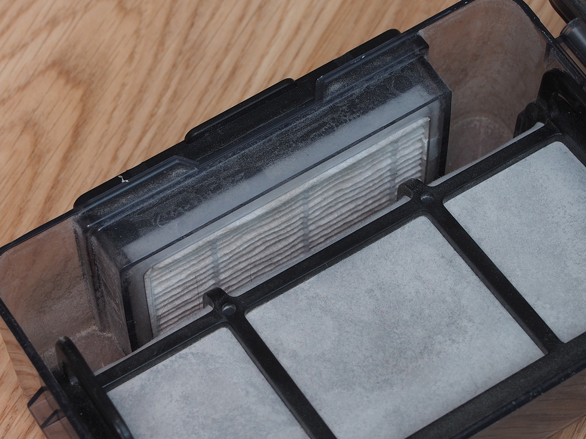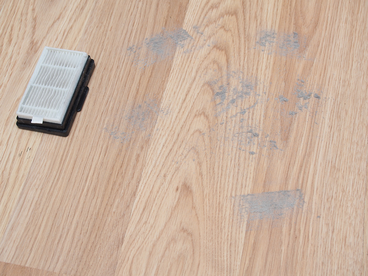 A takarítás minősége lehet az a pont, ahol a Profimaster nagyon elbukhat, hiszen az alján nincs kefés henger, ami segítene felemelni a koszt a földről és a felverni a port a szőnyegekről. Az egyből szembetűnő volt, hogy a hátsó légkivezető nyílásokon tisztán érezhető a kifújt levegő, ami sok koreai robotnál teljesen hiányzik. Ez már bizakodásra adott okot, hiszen akkor a szívómotor valószínűleg tényleg szívja is a levegőt. Takarítás után a padlón végighúzva a kezünket teljesen tisztának tűnt, és a takarítás tényét a teli portartály is igazolta. Kemény padlón teljesen elfogadható teljesítményt nyújt.