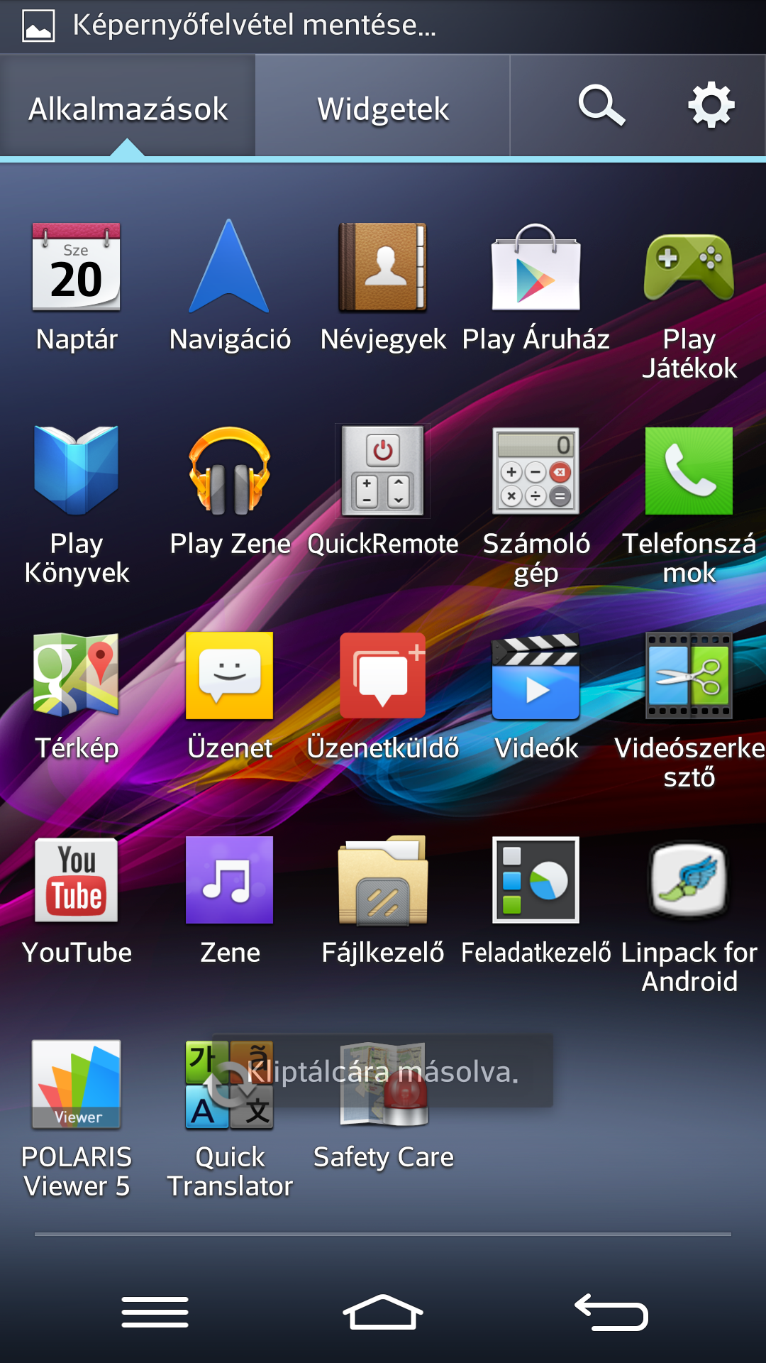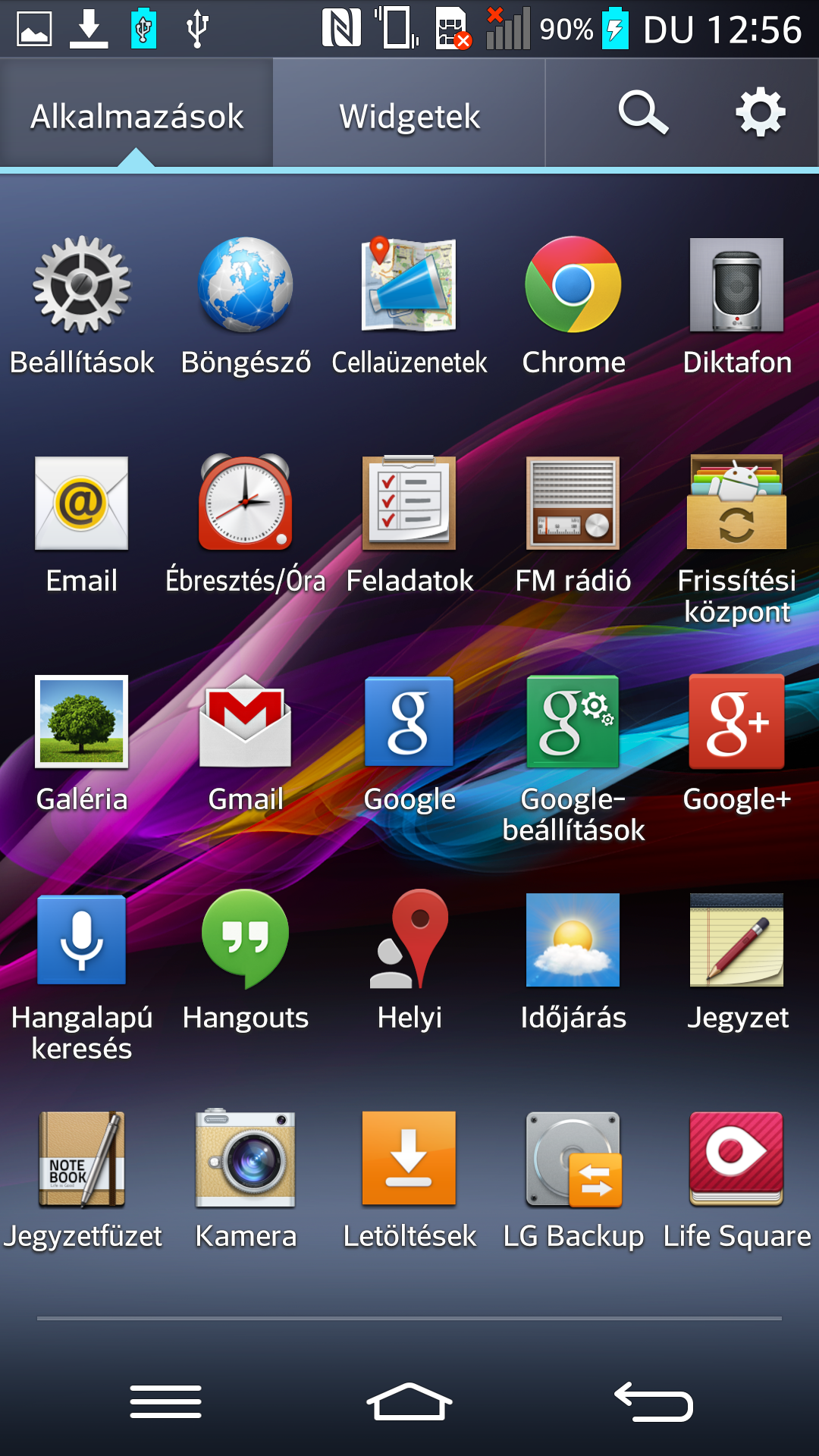 Az Android utóbbi verzióiban meglévő fix ikonsor természetesen az LG mobiján is visszaköszön. Alapesetben itt a Tárcsázó, a Névjegyek, a Böngésző, az Üzenetek és az Alkalmazásválasztó kaptak helyet, ebben a sorrendben. Utóbbi kivételével a parancsikonokat le lehet cserélni, és a sorrend is megváltoztatható – akinek nem fekszik például, hogy az alkalmazásokat a jobb alsó sarokból lehet elérni, egyszerűen átteheti a gombot mondjuk középre. Az LG a koncepciót még tovább is gondolta, mint a versenytársak szokták, mert ebben a sávban akár hét ikont is elhelyezhetünk. Minden kezdőképernyőre 5×5-ös rácsban helyezhetünk el ikonokat és widgeteket, és szintén 25 app látszik az alkalmazásválasztó egyetlen képernyőjén. Mappákat mind a kezdőképernyőkön mind az alkalmazáskezelőben létrehozhatunk.