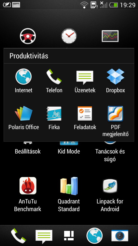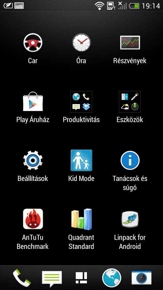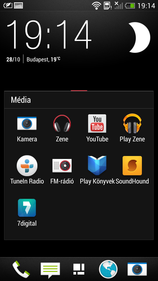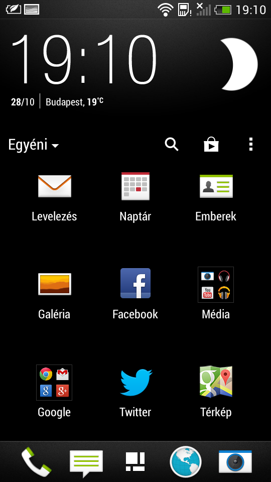 A rengeteg program ellenére a HTC alkalmazásválasztója rendezett, mert a telefont már gyárilag úgy kapjuk, hogy egyes szoftverek mappákba vannak rendezve. Külön csoportba kerültek például a Google szoftverei; és nemcsak rövidebb így az alkalmazások listája a menüben, hanem könnyebb is megtalálni az egyes appokat.