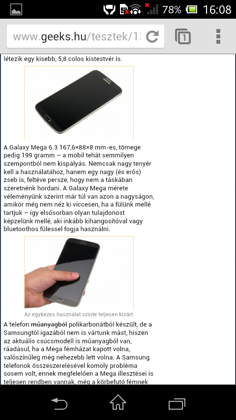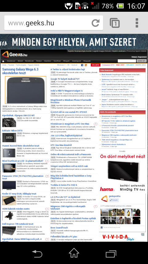 A böngészési élmény összességében jó, nem az Xperia M a leggyorsabb telefon, ha a weblapok megjelenítéséről van szó, de a renderelés sebessége még az igazán összetett weboldalak esetében sem volt rossz.