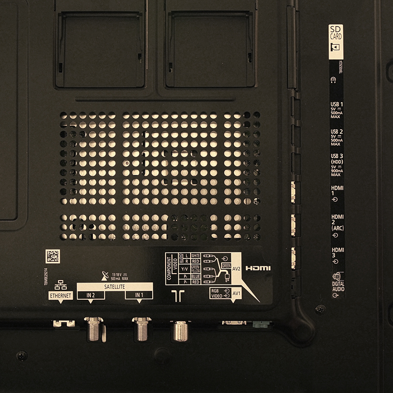 Csatlakozók és adapterek tekintetében a tévé ezúttal nem a gyártótól megszokott képet nyújtja. Bár a TX-L65WT600-on is megtalálhatók a sztenderd Panasonic modulok (WiFi és Bluetooth adapterek a „láb” mellett, három HDMI, 3 USB, optikai hangkimenet, jack hangkimenet és SD és CI slot oldalra, D-Sub, komponens/kompozit, Ethernet, 2 DVB-S és 1 DVB-T/C bemenet lefelé), az igazi érdekességet a HDMI 4-es csatlakozó illetve a DisplayPort bemenetek jelentik – ezeket kell ugyanis használnunk, ha 60 fps-es 4K-s videót szeretnék a tévére eljuttatni. AHDMI csatlakozók közül a 2-es és a 4-es egyaránt támogatja az ARC funkciót, de egyszerre csak az egyiknél működik a hang visszaküldése – hogy melyiknél, azt a menüben tudjuk kiválasztani.