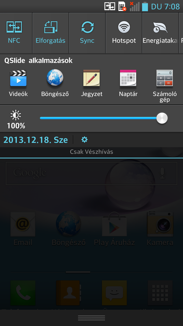 Az LG-nek is megtetszettek a lebegő alkalmazások; ezek a koreai gyártónál QSlide alkalmazások névre hallgatnak, és jelen pillanatban kilenc van belőlük: Böngésző, Telefonszámok, Üzenet, Naptár, Email, Jegyzet, Fájlkezelő, Számológép és Videók. Ezek az appok a „rendes” felület felett, ablakban futnak, átlátszóságuk változatható, és a kijelzőn tetszőleges helyre elhúzhatók. Hasznosak, ha webről akarunk meglesni egy telefonszámot, vagy éppen netezés közben szeretnénk filmet nézni, kiszámolni valamit, stb.