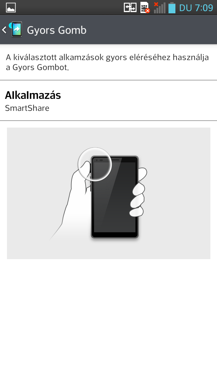 Ötletes extra a gyorsgomb, amelynek funkciója szabadon megválasztható – egészen pontosan azt állíthatjuk be, hogy a gomb megnyomásakor melyik alkalmazás induljon el. Bár az LG ajánl néhány opciót, teljesen szabadon választhatunk, így bármelyik, a mobilra telepített appot hozzárendelhetjük a készülékhez, sőt, akár a beállítási lehetőségek közül is választhatunk.