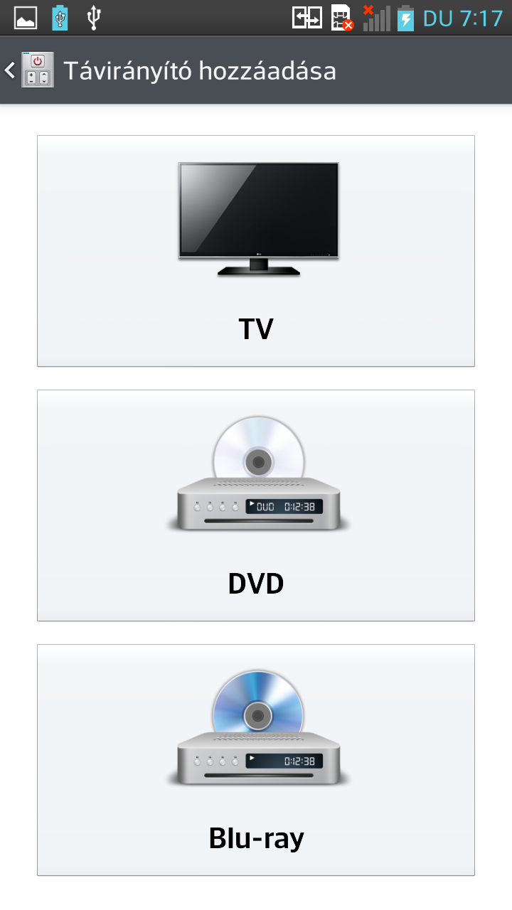 A távirányító app sajnos csak a butább változat, nem a G2-ben lévő verzió, így nem lehet tanítani, csak az előre beállított kontrollerek közül választhatunk. Nagy valószínűséggel a készülék még így is minden tévét és szórakoztatóeletktronikai eszközt tud kezelni, de nem lehet olyan saját távirányítót összeállítani, amely több eszközt is tud vezérelni.