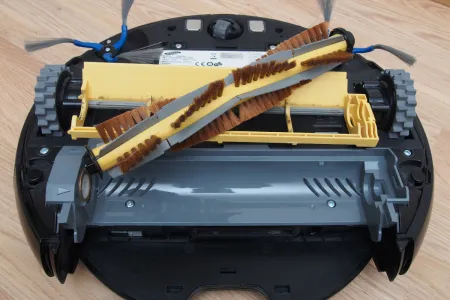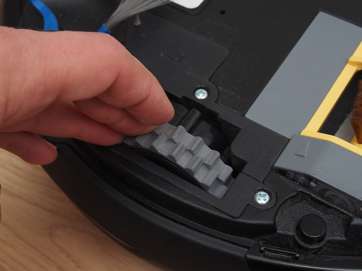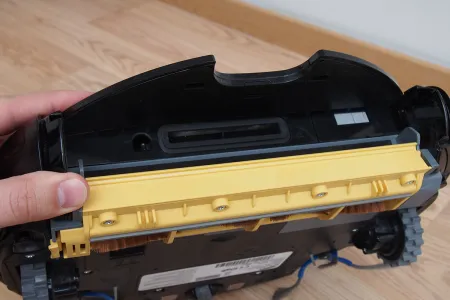A tisztító egység a kerékhez hasonlóan szintén egyben kiemelhető. A robot egyetlen hosszú kefés hengerrel takarít, amin a kefesorok mellett gumilapátok is vannak. A hengert szíjhajtás forgatja, amit a mérnökök egy egyik oldalán átlátszó házba rejtettek, így az oda bejutó és ott felhalmozódó kosz mennyisége kívülről is jól látható. A kefe egyébként 4 cm-rel hosszabb, mint az előd modellben, így a tisztítási szélesség 16 cm-ről 20 cm-re nőtt.