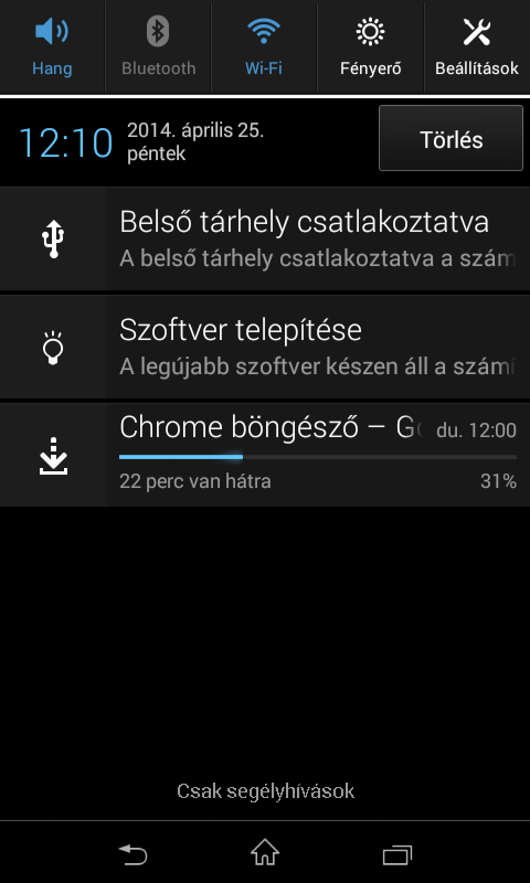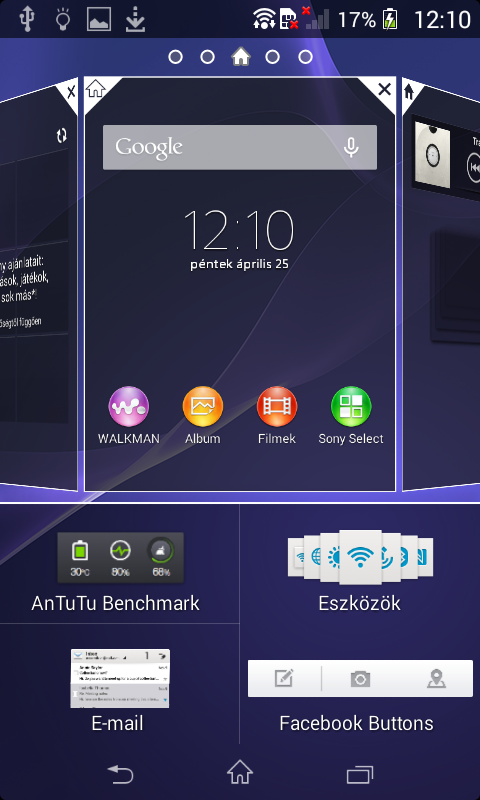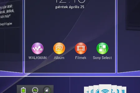Az Androidban alapesetben kétféle értesítési sáv van, a Sony viszont egyszerűsített a dolgokon, és kombinálta a gyorsgombokat valamint az értesítéseket. Az ötlet nem rossz, a megvalósítás viszont talán nem a legjobb, mert ha ötnél több ikont használunk, akkor azok már két sort foglalnak el, ami feleslegesen sok helyet vesz el teljes képernyőfelületből. A kihelyezhető gyorskapcsolók maximális száma egyébként tíz.