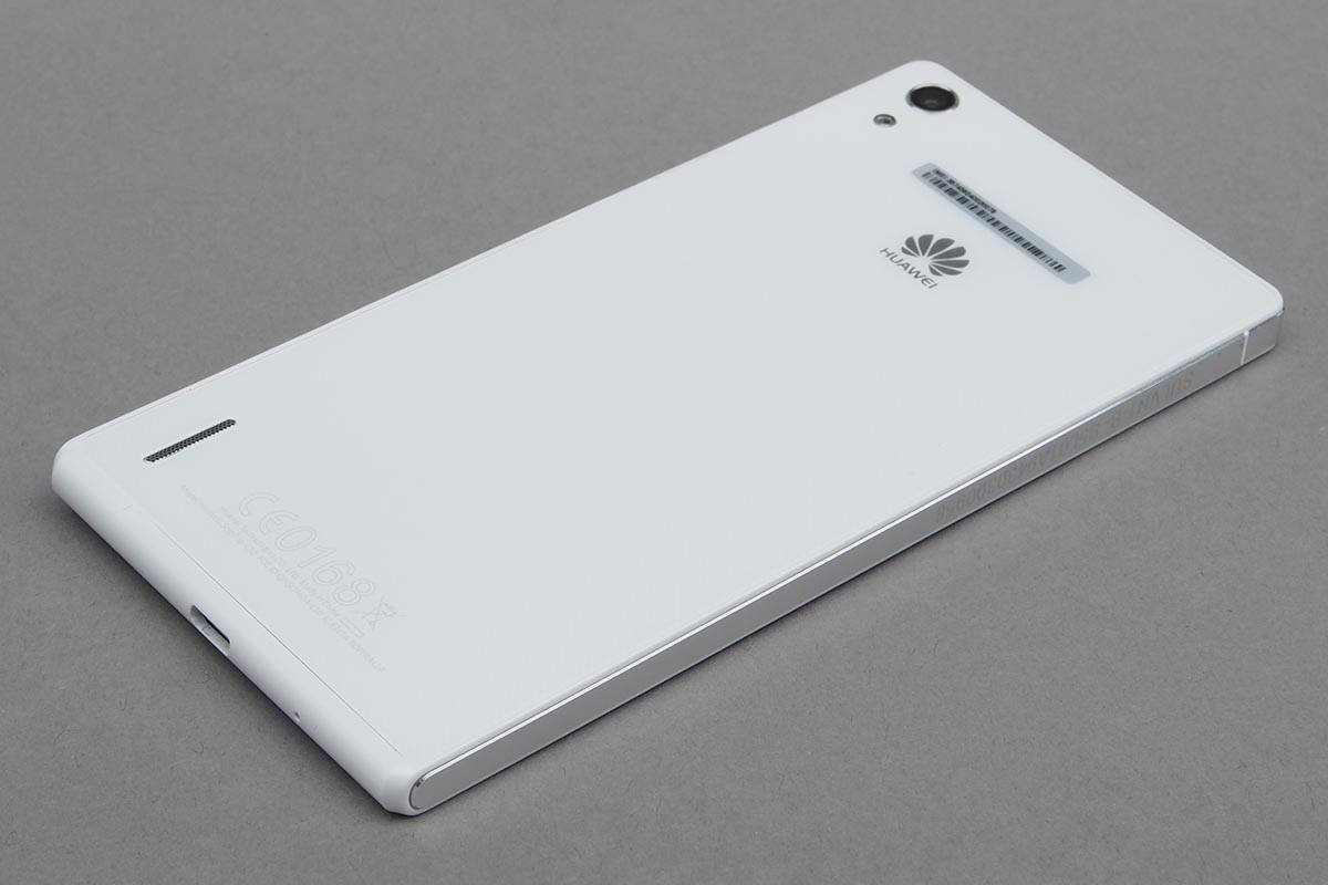 Az Ascend P7 egyik legfontosabb újdonsága a dizájn terén abból adódik, hogy a Huawei most már a kijelzőt is szerette volna felhozni oda, ahova egy csúcskategóriás készüléknél kell. A mérnök ezzel együtt igyekeztek megtartani az Ascend P6 jellegzetességeit, így a hihetetlenül vékony készülékház maradt (bár a telefon vastagsága 6,2-ről 6,5 mm-re növekedett), és alapvetően a formavilág sem változott. A telefon elő- és hátlapja műanyagból készült; az igényesebb fajtából, és mindkét felületet üveglap védi a sérülésektől (nem is akármilyen, hanem Gorilla Glass 3). A mobil mégsem viselkedik ujjlenyomat-mágnesként, de csak azért, mert a szennyeződések a fehér színű borításon nem látszanak.