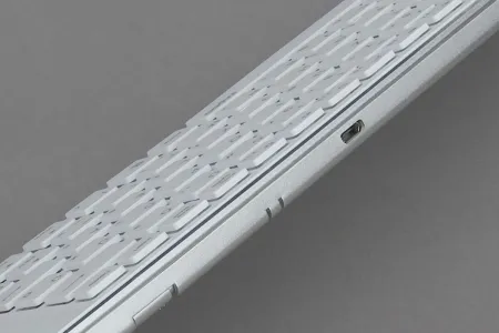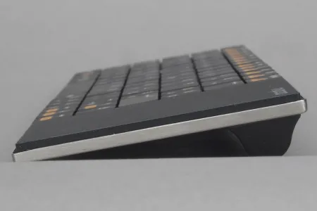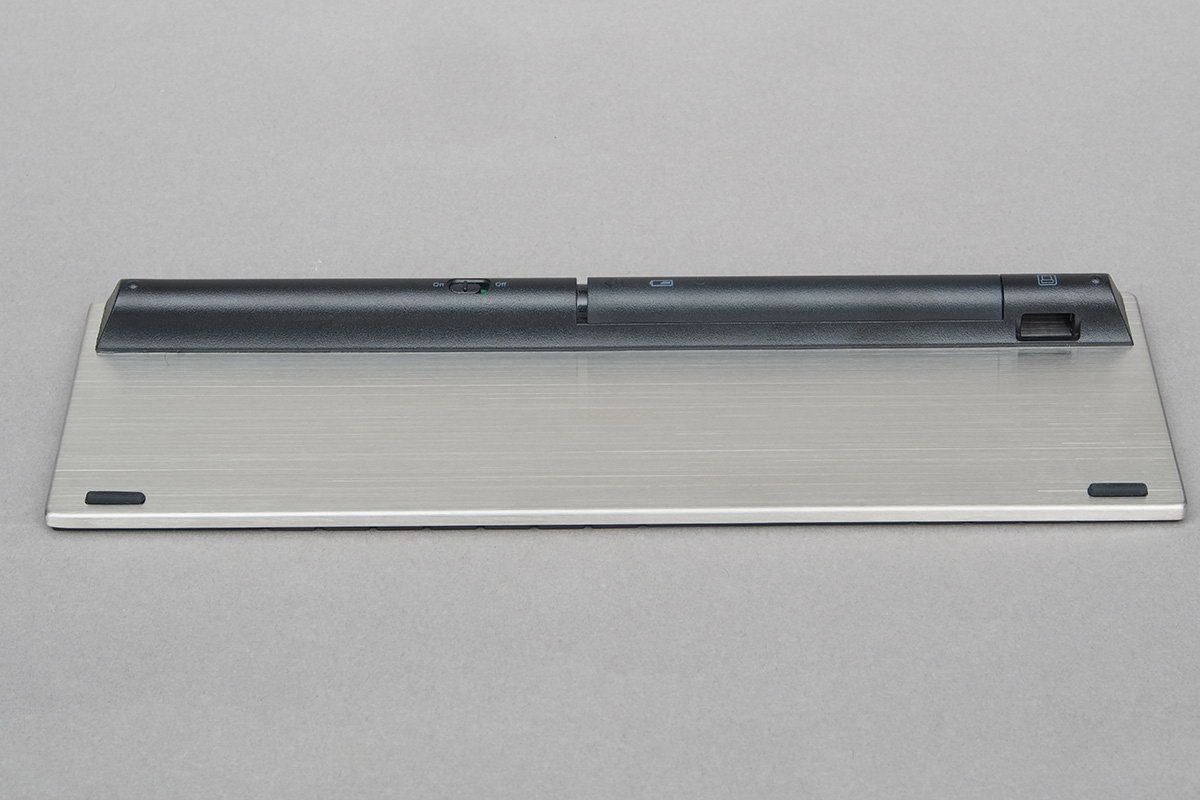 A chiclet (vagyis szigetes) gombok mellett egy nagyméretű, 8×9 cm-es tapipadot is kapunk, a hátsó rész pedig, ahogyan az előbb már említettük, fémből készült, így akkor sem hajlik be, ha a gombokat esetleg egy kicsit erősebben nyomjuk meg. A tápellátásról saját akkumulátor gondoskodik, amelyet microUSB-kábel segítségével tudunk feltölteni (a csatlakozó kommunikációra nem alkalmas, csak és kizárólag töltéshez jó). Az akku a hátsó támasztékként is szolgáló kiemelkedésben kapott helyet, csakúgy, mint a bekapcsoló gomb, a kapcsolódáshoz szükséges gomb illetve a töltést és a kommunikációt jelző LED-ek.
