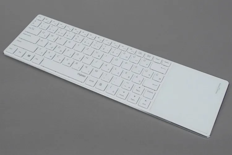 Egyre több az olyan tévé, amely nemcsak USB kapcsolaton keresztül tudja kezelni a billentyűzeteket, hanem akár Bluetooth segítségével is. A Rapoo E6700 elsősorban ezekhez a tévékhez készült, de mivel természetesen szabványos összeköttetést használ, párosíthatjuk táblagéppel, okostelefonnal vagy akár notebookkal is, ha éppen ahhoz van kedvünk. A klaviatúra hozzánk fehér színben érkezett, de a Rapoo gyárt belőle fekete változatot is. A fehér verzión többféle kialakítással létezik, ezek abban térnek el egymástól, hogy a hátsó, fémből készült borítás és a támasztó milyen színű: van belőle ezüst, piros, kék és sárga is. A színválasztéktól függetlenül a billentyűzet kialakítás igényes.