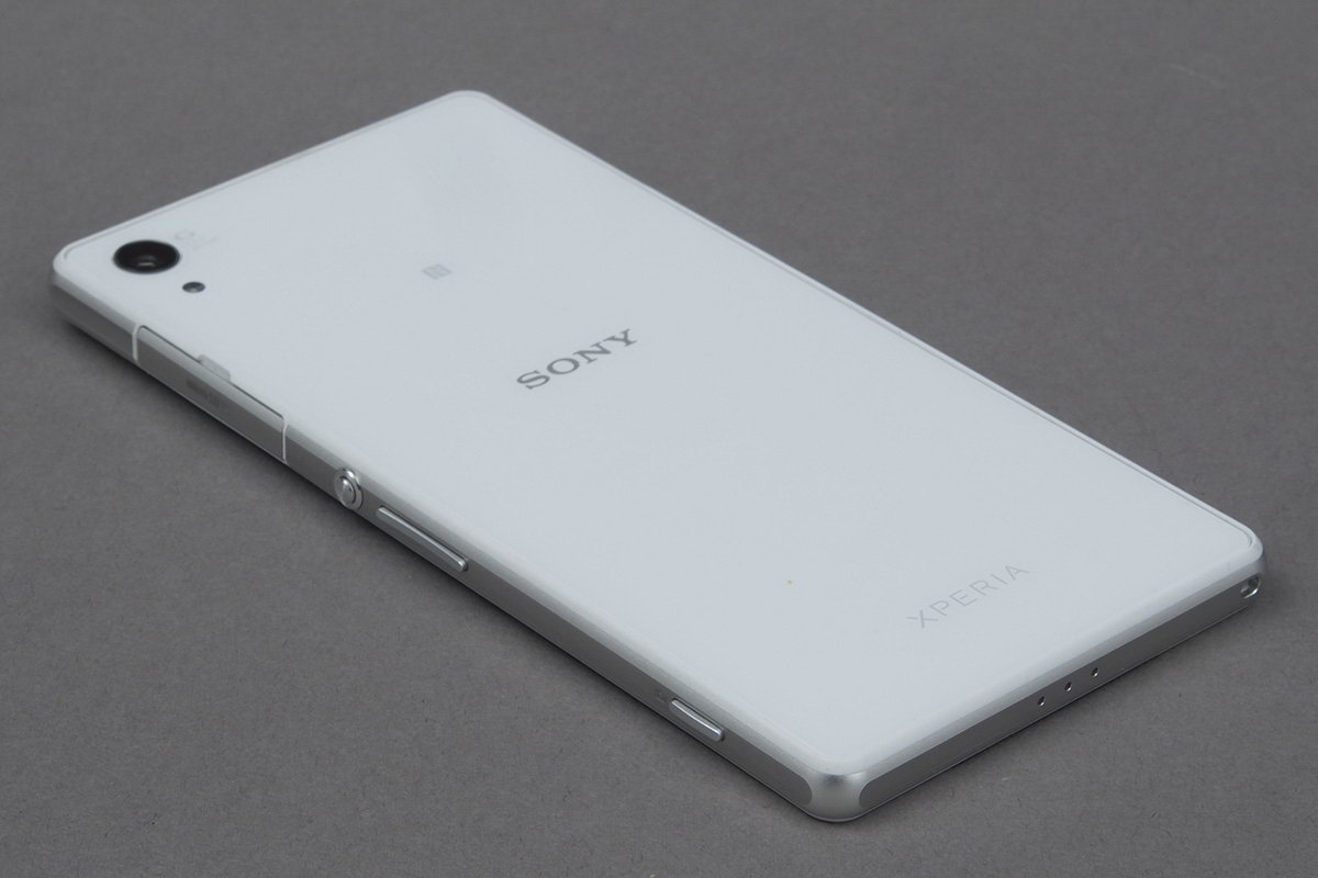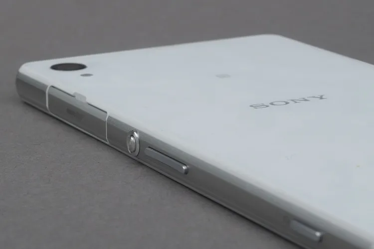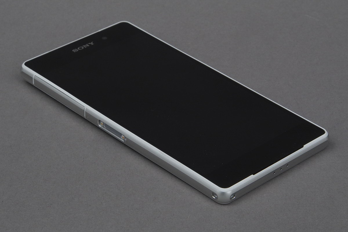 A telefont elöl és hátul is karcálló, de nem Gorilla Glass üveg borítja. A felületek épségének megőrzését a Sony azzal is igyekszik biztosítani, hogy a keret elöl és hátul is minimális mértékben túllóg, így bárhogyan is tesszük le a telefont mondjuk az asztalra, az üveg elvileg nem fog hozzáérni a felületéhez. Az oldalsó keret fémből készült, és ezüst színezést kapott – nálunk ezúttal a fehér színű verzió járt, amelynek azonban csak a hátsó része fekete, a Sony azt nem vállalata be, hogy az előlap színét is világosra cserélje. Fémből készültek azok a kis ajtócskák is, amelyek a microUSB-t és a micro-SIM valamint a microSD-kártya nyílásait védik. Felirat csak utóbbira került, ez viszont igényes, mart módon, így nem kell attól tartani, hogy idővel lekopik majd. Az ajtócskákra természetesen ezúttal is azért volt szükség, hogy a telefon IP58-as szabvány szerinti víz- és porállóságát biztosítani tudják; a vízállóság papíron 1 méteres mélységig és 30 percig garantált.