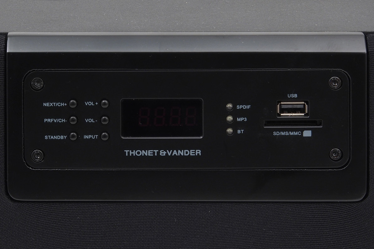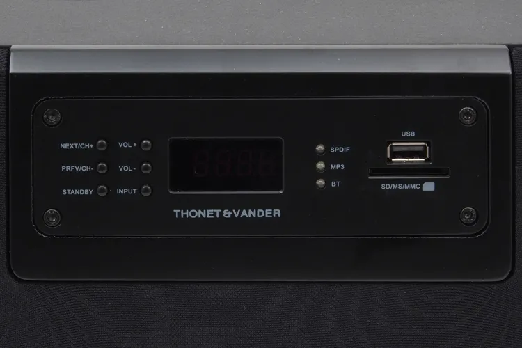 Az analóg és a digitális bemenetek használatához különösebb kommentárt nem fűznénk, minden az elvárásoknak megfelelően, rendben működik. Érdekesebb a Bluetooth illetve az MP3 lejátszási képesség. Előbbi esetben a hangszóró teljesen szabványos Bluetooth kiegészítőként látszik, és minden olyan eszközzel párosítható, amelyik legalább a 2.1-es szabványt ismeri. Amennyiben a forrás támogatja, a Thonet & Vander Grund előlapján lévő kezelőgombokkal (vagy a távirányítóval) is működik a lejátszás irányítása, így nemcsak a hangerő változtatható, hanem a lejátszás elindítása és megállítása valamint a számok közötti léptetés is működik.