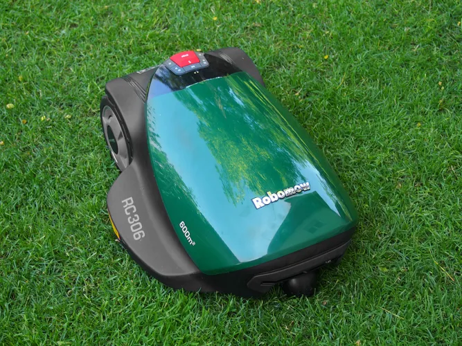 Jelenlegi tesztünk alanya, a Robomow RC306 tehát a kisebb változat legnagyobb teljesítményű darabja. 600 m2-es területekre tervezték, így gond nélkül meg kell, hogy birkózzon a Geeks.hu teszt kertjében található kb. 300 2-es gyepfelülettel.