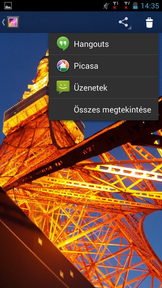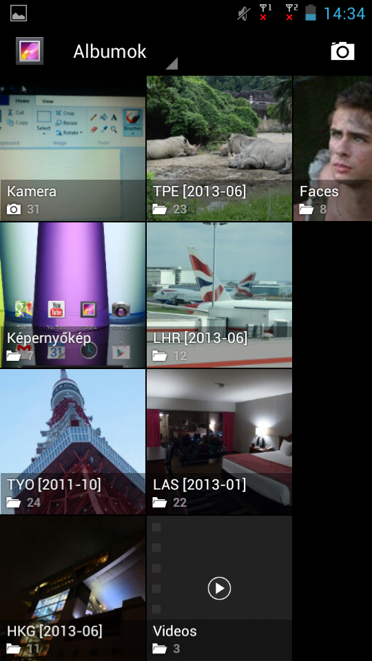 Kedvenc fotóinkat, képeinket a Galéria alkalmazás mutatja meg, és ez az app kezeli a videókat is. A multimédiás fájlok a megszokott módon jelennek meg: a mappákat négyzet alakú terület jelzi, a bennük lévő tartalomra pedig mindig a mappában lévő első kép előnézeti képe utal. A fotók nézegetése gyors, és a szokásos megosztási lehetőségek egy része is rendelkezésre áll. A lista nyilván tovább bővíthető, hiszen a telefonon alapból nincsen fent a Facebook, de ha ezt az appot is telepítjük, akkor a megosztási lehetőség beépül a Galériába (is).
