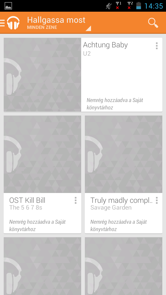 Mivel az előző oldalon már említettük, hogy a telefonra nem kerültek extra alkalmazások, sejthető, hogy a zenelejátszást alapból szintén a Google programjával, mégpedig a Play Zenével kell megoldanunk. Ez a szoftver valószínűleg mindenki számára ismert, aki fogott már a kezében androidos telefont. Az app műfaj, előadó, album és cím alapján képes listázni a számokat, és persze hozzáférést is nyújt a Google felhő alapú tárhelyéhez, amelynek ingyenes verziója 20 ezer zeneszám tárolását teszi lehetővé (havi 1950 forintért pedig a Google zenetárából bármit hallgathatunk).