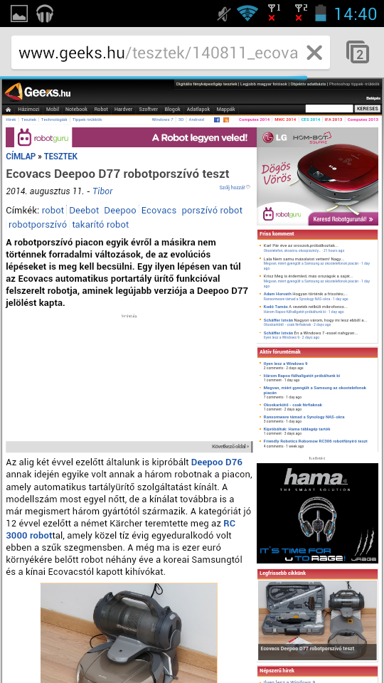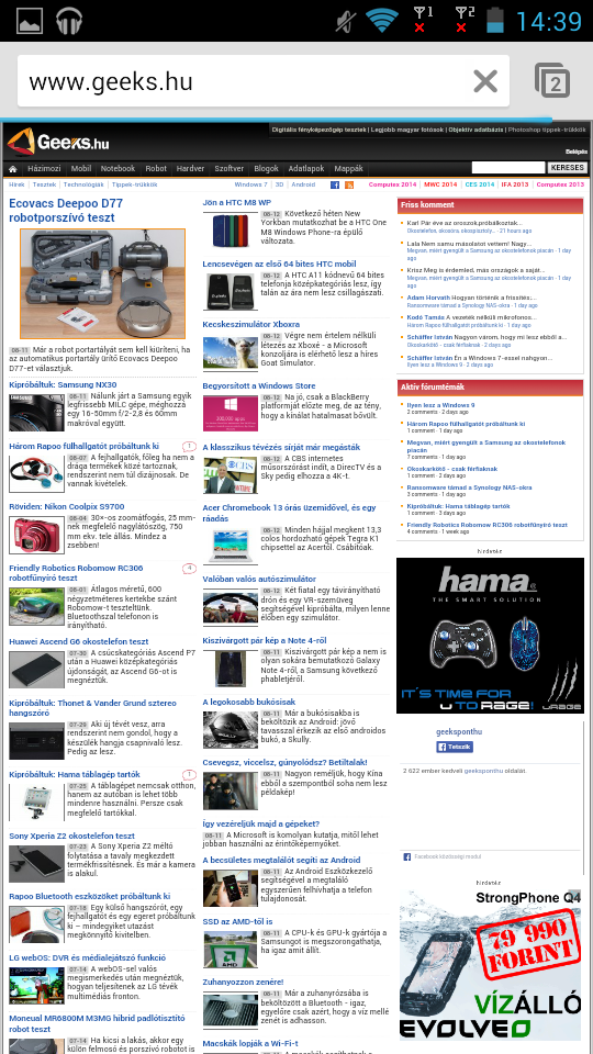 A kijelző méretéből adódóan a böngészés egyébként meglehetősen kellemes élmény, az olvashatósággal nincsen gond – és a telefon fektetett helyzetben szinte az összes weboldalt meg tudja mutatni eredetiben is, legfeljebb a jobb oldali hasábból fog egy minimális rész hiányozni. A zoom és a betűk újrarajzolása zökkenőmentes volt.