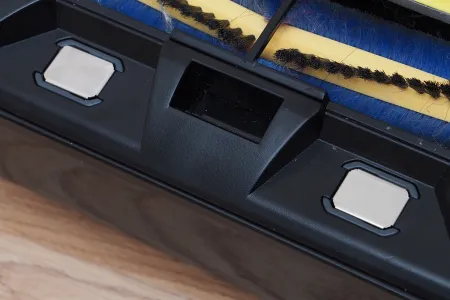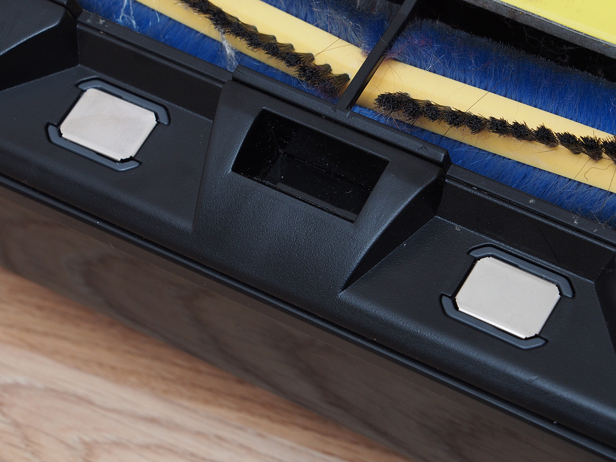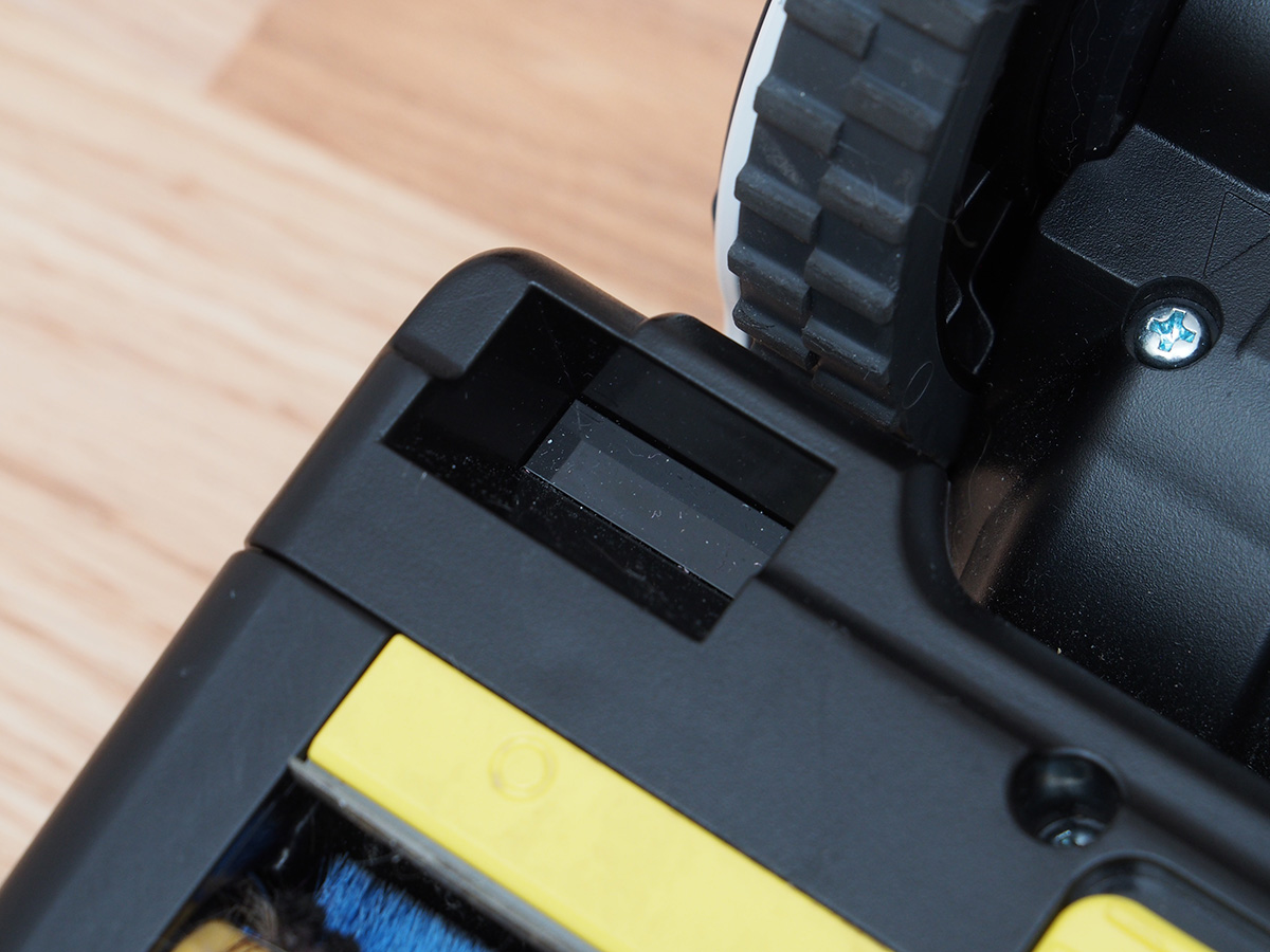 A lépcsőn való leesést meggátoló mélységérzékelő szenzorok a kefe előtt középre és a kefe mögött két szélre kerültek. A középső szenzor két oldalán lévő krómozott lapok a dokkolóval való kapcsolatot biztosító érintkezők.