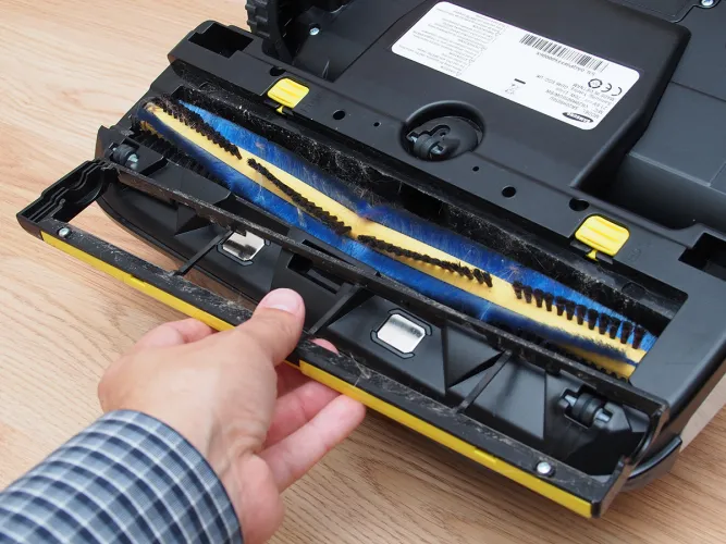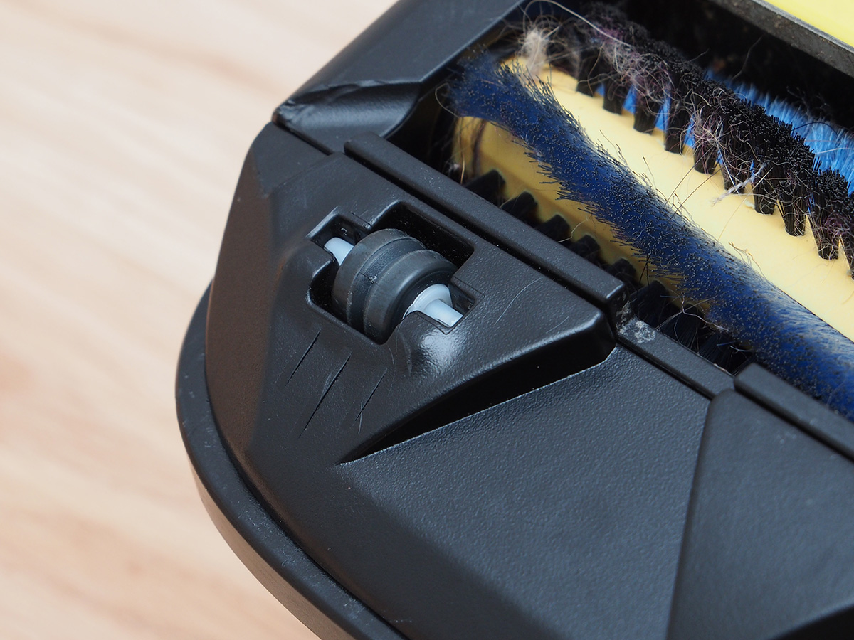 A robot orrába rejtett kefés henger 30 cm hosszú és V alakban tartalmazza a sörtesorokat. A kefe tengelyétől a robot orráig 6,5 cm, míg a kefe két végétől a szélekig a bal oldalon 2,5, a jobb oldalon 3,5 cm a távolság. Így arra lehet számítani, hogy nagyjából 2,5 cm lesz az a terület, ami a bútorok mentén érintetlen marad. Persze ez csak részben igaz, hiszen az orr rész sarkaiban kialakított árkok a széleken extra szívóerőt generálhatnak, ami segít felszedni a könnyebb szennyeződéseket.