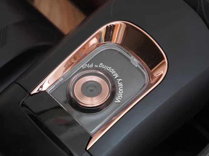 Az orr rész felépítése és kialakítása tűnik a legrejtélyesebbnek. A középen futó kiemelkedés szerepe egyértelmű. Közepén helyezkedik el a plafont bámuló kamera, ami technikailag azonos (Visionary Mapping Plus) a korábbi generációkban megismerttel. Folyamatosan figyeli a plafont és az alapján egy térképet állít össze a lakásról, pontosabban azokról a pontokról, ahol már járt. A körülötte lévő kiemelkedő keret hátulról előre felhajtható, lecsukott állapotban a portartályt rögzíti a helyén.