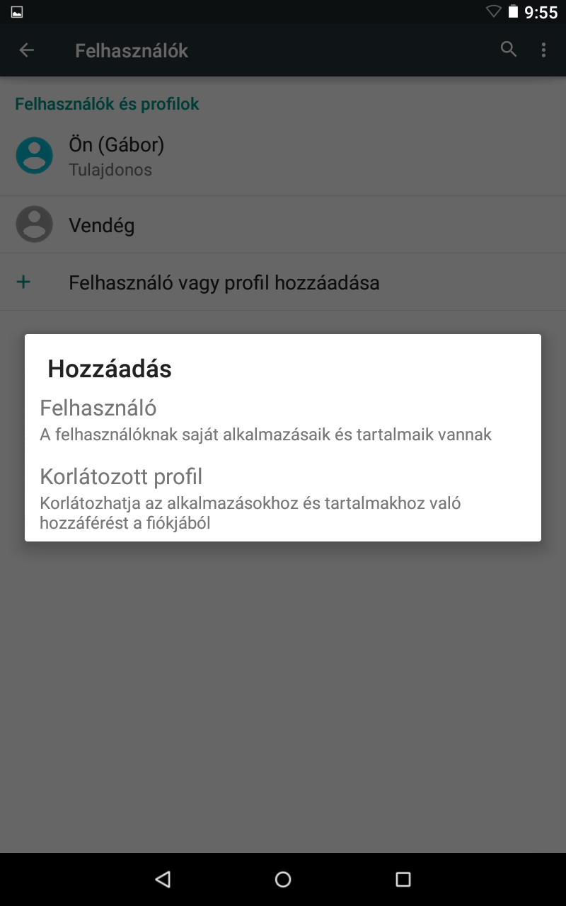 A felhasználói fiókok az Android 4.2-ben jelentek meg, a koncepciót most tovább gondolta a Google. Ez a funkció most már nemcsak táblagépeken, hanem telefonokon is elérhető lesz. Eddig az volt a mondás, hogy egy mobilt jellemzően csak egyvalaki használ, a táblagép viszont a családé – ezért nem volt szükség több felhasználó kezelésére mobilon. Csakhogy a gyártók közül néhányan, élükön az LG-vel, megmutatták, hogy bizony lehet olyan helyzet, amikor egy mobilnál is jó, ha lehet váltani. Elsősorban nem azért, mert más is rendszeresen használja a telefont, hanem inkább azért, mert a telefont esetleg kölcsön adhatjuk valakinek pár perce, vagy azért mert kérte, vagy azért, mert meg szeretnénk neki mutatni rajta valamit. Jó, ha mindezt úgy tehetjük meg, hogy közben nem kell a személyes adatok miatt aggódni. A funkció vendég módként híresült el, és alighanem az apropóját adta annak is, hogy a Google merre indult el a fiókok kezelésének fejlesztésével. Ebből már sejthető, hogy van egy vendég fiók; ebben alapból nem korlátozott az alkalmazások használhatósága, viszont semmilyen „belső” adathoz nem lehet hozzáférni, még a böngésző előzményei sem látszanak. És amint visszalépünk a saját fiókba, minden, amit a vendég csinált, rögtön történelemmé válik. Van továbbá egy köztes megálló is; új fiók létrehozásánál saját ízlésünk szerint állíthatjuk be, hogy milyen erőforrásokat és alkalmazásokat lehessen elérni vele.