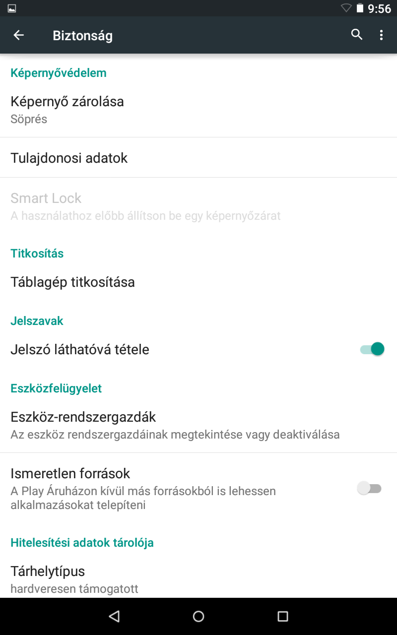 A háttértár titkosítása már egy jó ideje lehetőség az Androidban, ám a statisztikák azt mutatják, hogy ezzel a lehetőséggel szinte senki sem él, legfeljebb akkor, ha céges policy miatt kell bekapcsolni. Az Android 5.0-ban jobb a helyzet, de a háttértárat továbbra sem titkosítja alapból a rendszer; viszont első bekapcsolásnál felajánlja ezt a lehetőséget. Hogy ez miért fontos? Azért, mert ilyenkor még nincsen adat a tableten, így a titkosítás bekapcsolása nem túl időigényes feladat. A Google azt reméli, hogy ettől sokkal többen fogják használni.