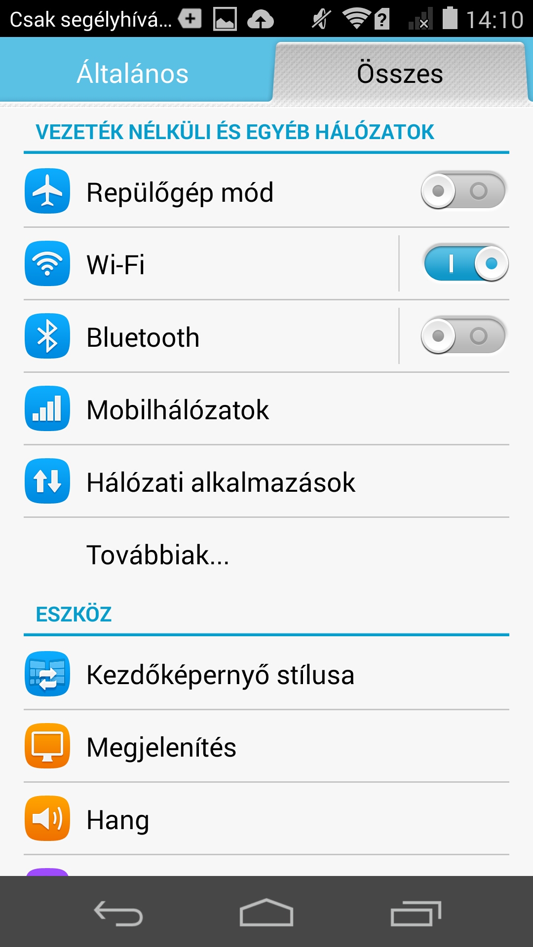 A Huawei az összes ikont átrajzolta; az új külső megítélése egyed preferencia függvénye. Szerintünk nem rosszak az ikonok, de az talán zavaró, hogy minden, a telefonon a gyári állapotban lévő app pontosan ugyanolyan formájú miniatűrt kapott. Az opciók felett megjelent két fül, amelyekkel az általános és az összes beállítási lehetőség közül lehet választani. Utóbbi az Android esetében megszokott teljes menüstruktúrához visz, és érdekes lehetőségeket is tartalmaz; beállíthatunk például többféle lezáró képernyő hátteret (amelyek közül a telefon véletlenszerűen választ). Az értesítési sáv az Androud stock megoldásához hasonlóan működik: egy ujjal lehúzva az értesítésekhez jutunk, kettővel pedig a kapcsolópanelekhez. A mobil lezárt állapotában lentről is felhúzhatunk egy ablakot, amely Apple-ös módra néhány fontos kapcsoló és szoftver ikonját tartalmazza, pl. zene indítása/megállítsa, zseblámpa.