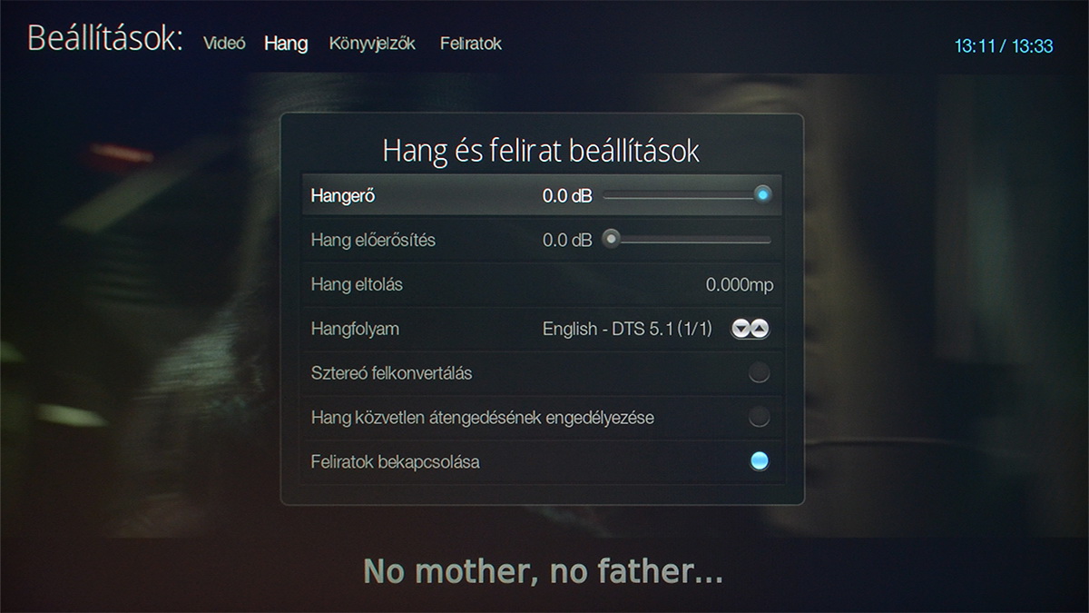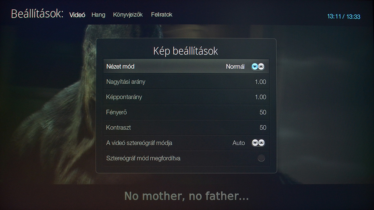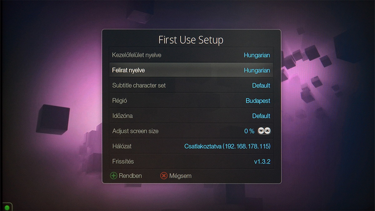 A beállítási lehetőségek tárháza összességében bőséges – arra viszont figyelni kell, hogy az XBMC-ben többféle beállítási szint van. Alapesetben nem állítható például, hogy a digitális hangok közül melyiket streamelje a lejátszó, és melyeket alakítsa PCM formátumúra küldés előtt. Érdemes tehát rögtön az elején a Profi szintet kiválasztani, hogy tényleg minden lehetséges beállítási lehetőséghez hozzájussunk. Messze a teljesség igénye nélkül: állítható a feliratok helyzete, karakterkódolása, a kép széleinek helyzete, a feketeszint, a nagyítás/torzítás mértéke, stb. Gyakorlatilag mondhatjuk, hogy bármi is jut eszünkbe, azt fogjuk tudni állítani.