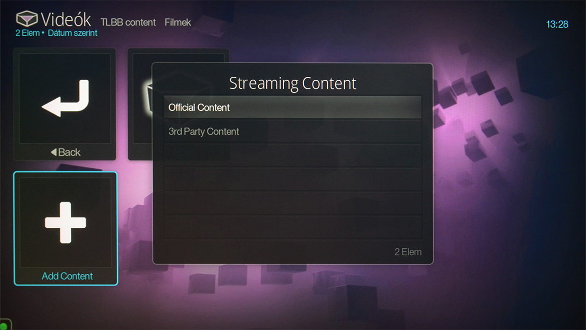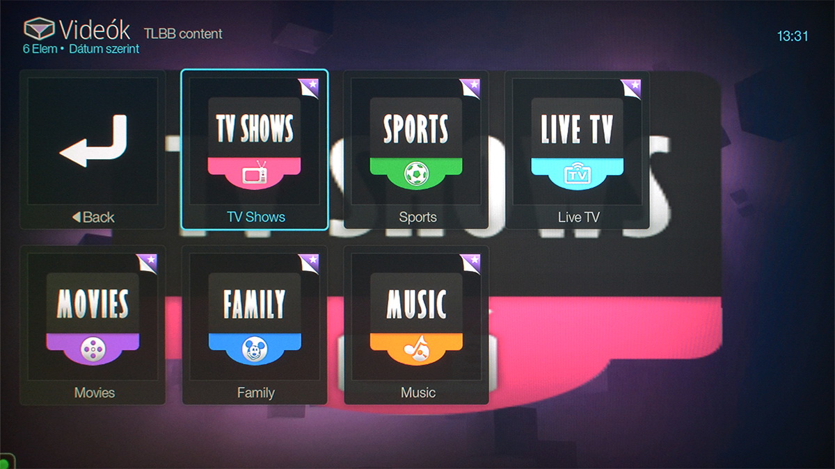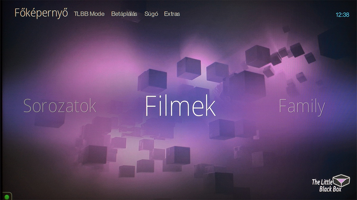 Amiben a The Little Black Box többet nyújt, mint ha otthon egy saját HTPC-t építettünk volna, az az, hogy a saját skint használva átválthatunk egy olyan nézetre is, amelynél a fő hangsúly a streaming szolgáltatások felé terelődik; a klasszikus Filmek-Képek-Zenék hármas mellett további menüpontok jelennek meg (Family, Sport – ezek valamiért nem magyarul vannak). Ebben az esetben a helyi mappákat nem is látjuk, viszont elvileg rengeteg, az internetről elérhető ingyenes streaming szolgáltatáshoz hozzáférhetünk.