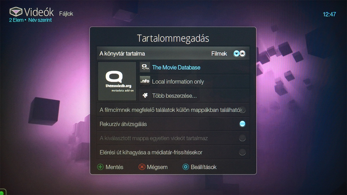 Az XBMC-ben a 13-as változat óta az információk leszedése nemcsak pontos, hanem gyors is. Ami szép az egészben, az az, hogy a fájlok elrendezésénél gyakorlatilag semmilyen szabályra nem kell figyelni, a filmek akkor is meglesznek, szinte egytől egyig, ha ugyanabba a mappába másoltuk őket. Hibák azért becsúszhatnak, főleg feldolgozásoknál illetve folytatásoknál; a Váltságdíj Mel Gibson-féle remake-je helyett például az eredeti (Leslie Nielsen szereplésével készül) verziót találja meg az XBMC, ha a fájlnévben nem helyezzük el a premier évét. Ezek a keresési bakik természetesen kézzel pillanatok alatt javíthatók – sajnos tökéletességet nem várhatunk el az automatikus megoldásoktól. Egyébként korábban egy közel 2000 címes adatbázison is teszteltük az XBMC-t, és a hibák száma 40 darab, vagyis 2 százalék alatt volt. A sorozatoknál már érdemes mappákba pakolni a fájlokat, de mappán belül megint szabad a vásár, az egyes évadokkal akkor is remekül boldogul a szoftver, ha a fájlokat ömlesztve tároljuk. Az elnevezésnél pedig tényleg csak az a lényeg, hogy az évad és az epizód száma benne legyen a fájlnévben; akár annyi is elég, hogy s01e01.mkv. Természetesen az adatbázisban, a keresés lefuttatása után, nem az eredeti fájlnévvel, hanem a valódi címmel szerepelnek a filmek, sorozatok.