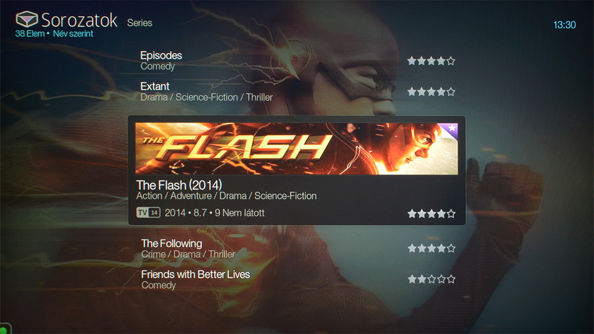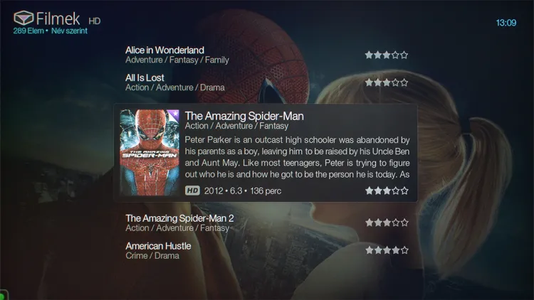 A filmlista többféle formát is ölthet, de a keresést/rendszerezést az is segíti például, hogy a már megnézett filmeket jelölhetjük, elrejthetjük. Ha pedig a filmek eredeti címét listázzuk, akkor megadható az is, hogy a „The” előtag számítson-e a rendezési sorrendnél vagy sem. És akkor arról még nem is szóltunk, hogy a sorozatokat (például Halálos iramban széria) szintén össze tudja fogni (mappába tudja rendezni) a szoftver. Nem véletlen, hogy ezt a sagát vettük példának, ennél ugyanis nagyon hasznos ez az opció, mert a folytatások címe alapján amúgy az egyes részek bőven nem egymás alatt, hanem össze vissza lennének: The Fast and the Furious, 2 Fast 2 Furious, Fast & Furious, Fast Five, Furious 7 címek is szerepelnek a címek között.