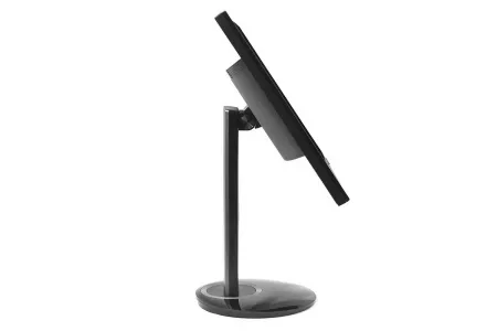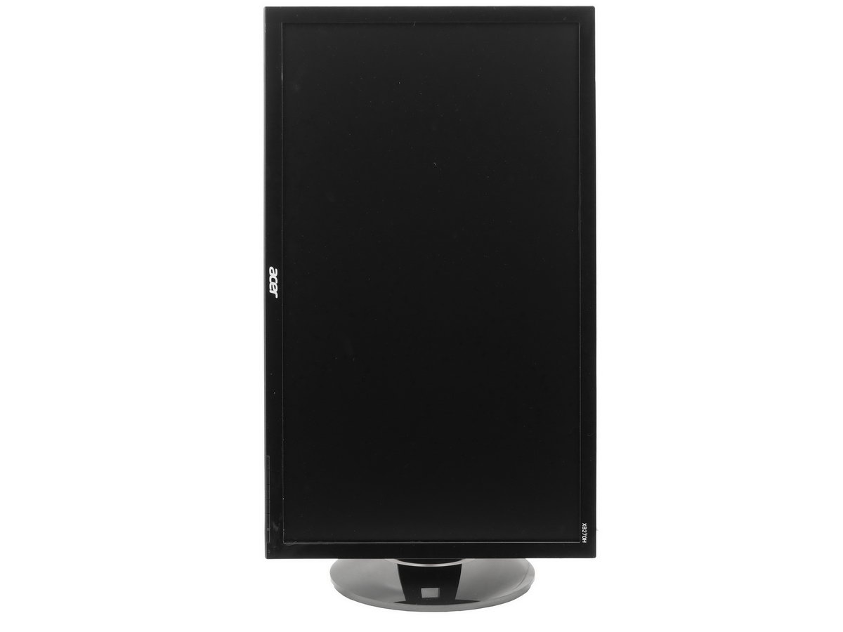 Az Acer felirat a káva alsó részére került, a jobb felső sarokban pedig a típusjelzés látható; tipikus elhelyezkedés mindkét címkére vonatkozóan. Nemcsak a káva, hanem a talp is fényes fekete, így a két egység tökéletesen illeszkedik egymáshoz. Az állvány alsó részének kör alakú formája sejteti, hogy a monitor elforgatható, de a talp további érdekességeket is rejt. Mégpedig azt, hogy segítségével a kijelző emelhető, dönthető (-5 és 35 fok között) és pivot módba is állítható. Az állvány a dobozból két darabban kerül elő: a matt fekete nyakat és talpat azonban egyetlen csavarral lehet egymáshoz rögzítni, és ehhez a művelethez még csavarhúzó sem szükséges. A monitort ezután csak be kell pattintani a helyére. A rögzítés stabil, az eszközt simán fel lehet emelni csak a kávát megfogva is.