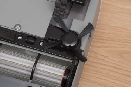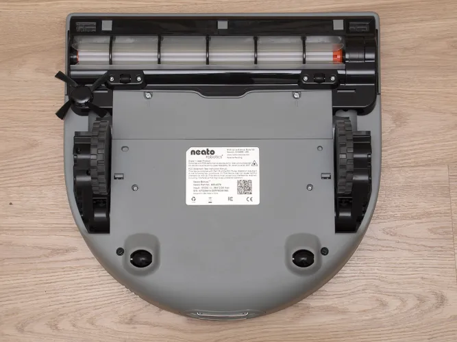 A robot aljának felépítése a szokásos sémát követi, de azért akad bőven változás. Sőt, a legfontosabb, legtöbb Neato tulaj által várt módosítás is itt látszik igazán. Ez pedig az oldalkefe, ami a fal és bútorok mellett haladó robotnak segít a kosz és szemét begyűjtésében. A kefe négy csomóban tartalmazza a meglehetősen rövid sörtéket, és érdekes módon nem a kefés henger elé, hanem mögé került. A kefét mágnes tartja a helyén, így akár szerszám nélkül is levehető.