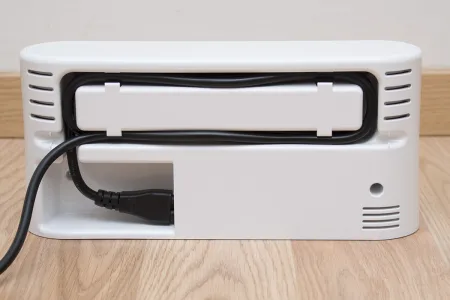 A dokkolóra ugyanaz jellemző, mint magára a robotra. Első ránézére azt mondhatnánk, hogy csak a színe változott, pedig teljesen új konstrukció, miközben működési módja valószínűleg változatlan. A stabilitást egy előre kinyúló talppal növelték, a felesleges kábel pedig a burkolat levétele nélkül feltekerhető és tárolható. Fontos észrevenni, hogy a korábbi külső tápegység beépítésre került, így egyrészt azzal nem kell bajlódni, másrészt külön tápegységgel nem lehet tölteni a robotot. Ezeket nyugodtan besorolhatjuk a pozitív változások sorába.