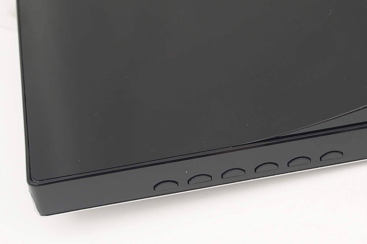 Kicsomagolás és gyors összeszerelés után a legszembetűnőbb az, hogy a monitor káva nélküli kialakítást kapott, amelyez ezúttal szó szerint kell érteni: az előlapot a két szélén és a felső részén ugyanis egyáltalán nem takarja borítás, a széleken csupán egy vékony keret húzódik végig, ez azonban minimális mértékben sem lóg rá a megjelenítőre. Trükk azért van a dologban, mivel a kép nem kezdődik el a rögtön a külső részeken, a szélektől nagyjából 6-7 millimétert minden oldalon rá kell még számolnunk. Az ilyesfajta kialakítás elsősorban nem a bekapcsolt készülék megjelenését emeli, inkább akkor hasznos (vagy inkább látványos), amikor az adott kütyü éppen használaton kívül van. Főleg, hogy ilyenkor nem is nagyon látszik a panel és a káva közötti váltás, legfeljebb csak akkor, ha a nap éppen az ehhez megfelelő szögben (és erősen) süt a panelre.