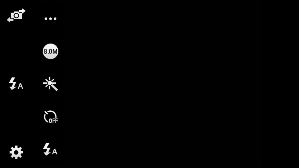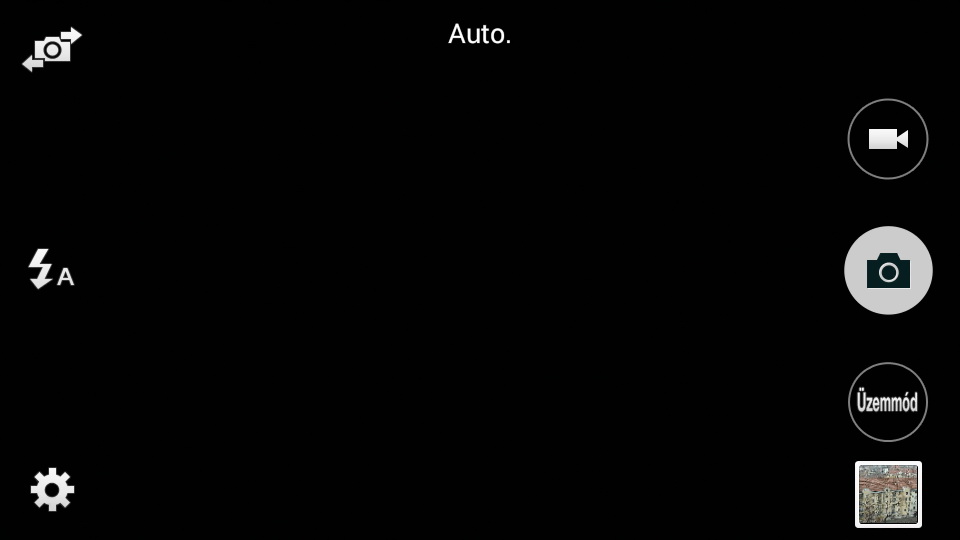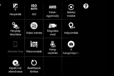 Választék van, az alapvető képjellemzőket leszámítva szinte mindent lehet állítani. A jobbra lévő ikonokkal tudunk fényképezni, videót rögzíteni és üzemmódot váltani. Dedikált exponáló gomb nincsen, de a hangerőszabályzóval ezt helyettesíthetjük.