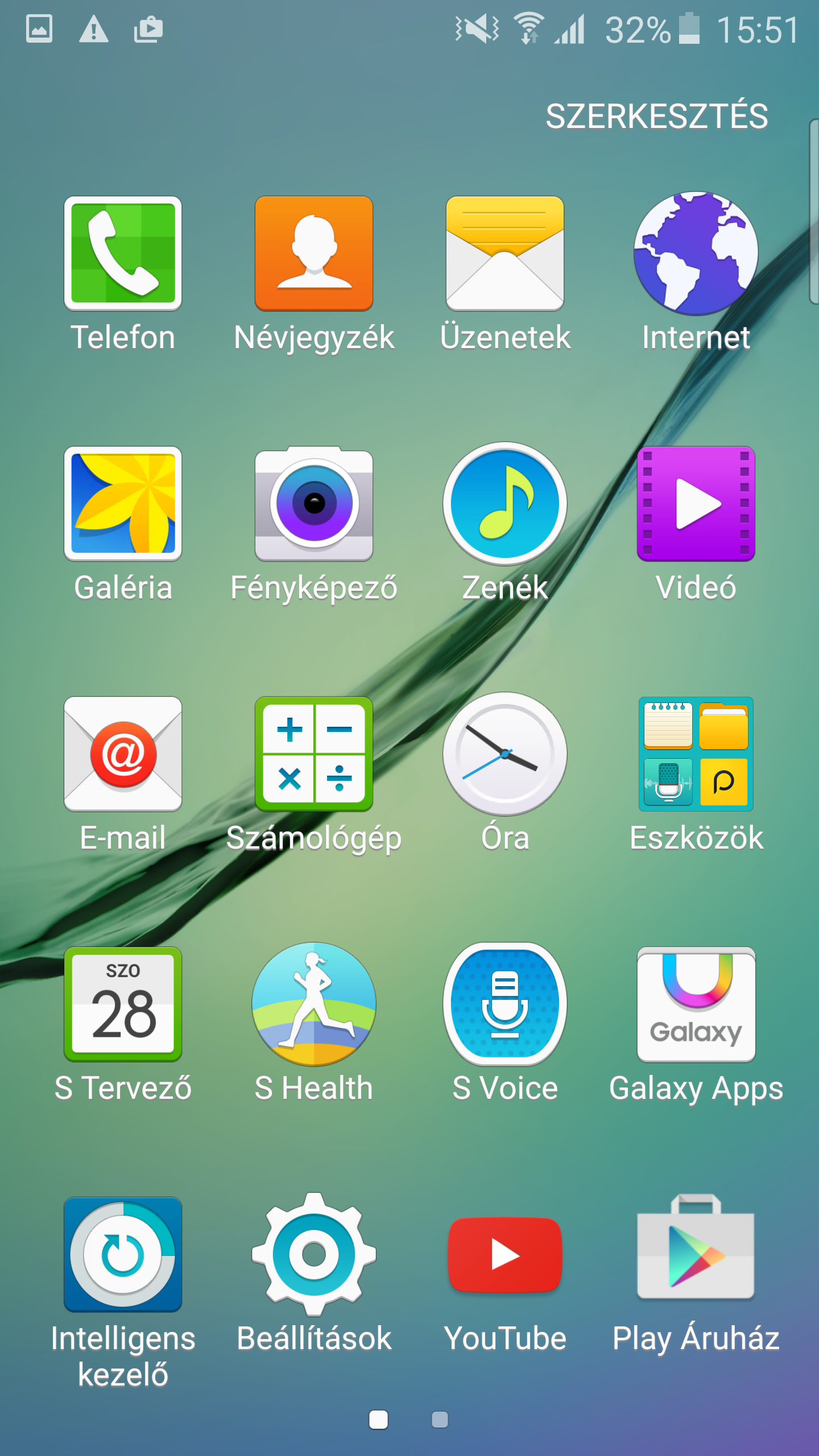 Android 5.0.2 és TouchWiz UX a nyerő páros a Samsung szerint. Az Android 5.0.2 egy csúcskategóriás készüléknél természetesen elvárás, a TouchWiz UX pedig szinte minden Samsung készüléken megtalálható, sokak örömére. És sokak bánatára. Merthogy sokan úgy vélik, hogy a Samsung folyamatosan túltolja a dolgokat, és szükségtelenül telepakolja a szoftvert mindenféle olyan extrákkal és szoftverekkel, amelyeket aztán nem használ az égvilágon senki sem. A helyzet azonban az, hogy már a Galaxy S5 is nagyon kezes volt e szempontból (mivel a Google rápirított a Samsungra), a Galaxy S6 edge pedig egyenesen kevés extra programmal érkezik. Ami nem jelenti azt, hogy a Samsung hanyagolta volna saját alkalmazásait, ezek azonban nem találhatók meg alapból a telefonon, hanem a Samsung saját alkalmazásboltjából tölthetők le (többnyire ingyen).